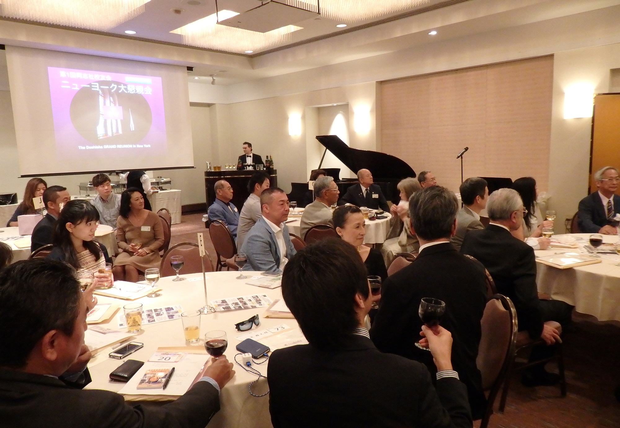 海外での初めての大懇親会が現地時間9月17日(土)17時30分からニューヨーク日本クラブで開催されニューヨークを始め、米国西部支部、米国中西部支部、ワシントンDC同志社会、同志社トロント会、日本からも約20名、総勢81名が出席しました。