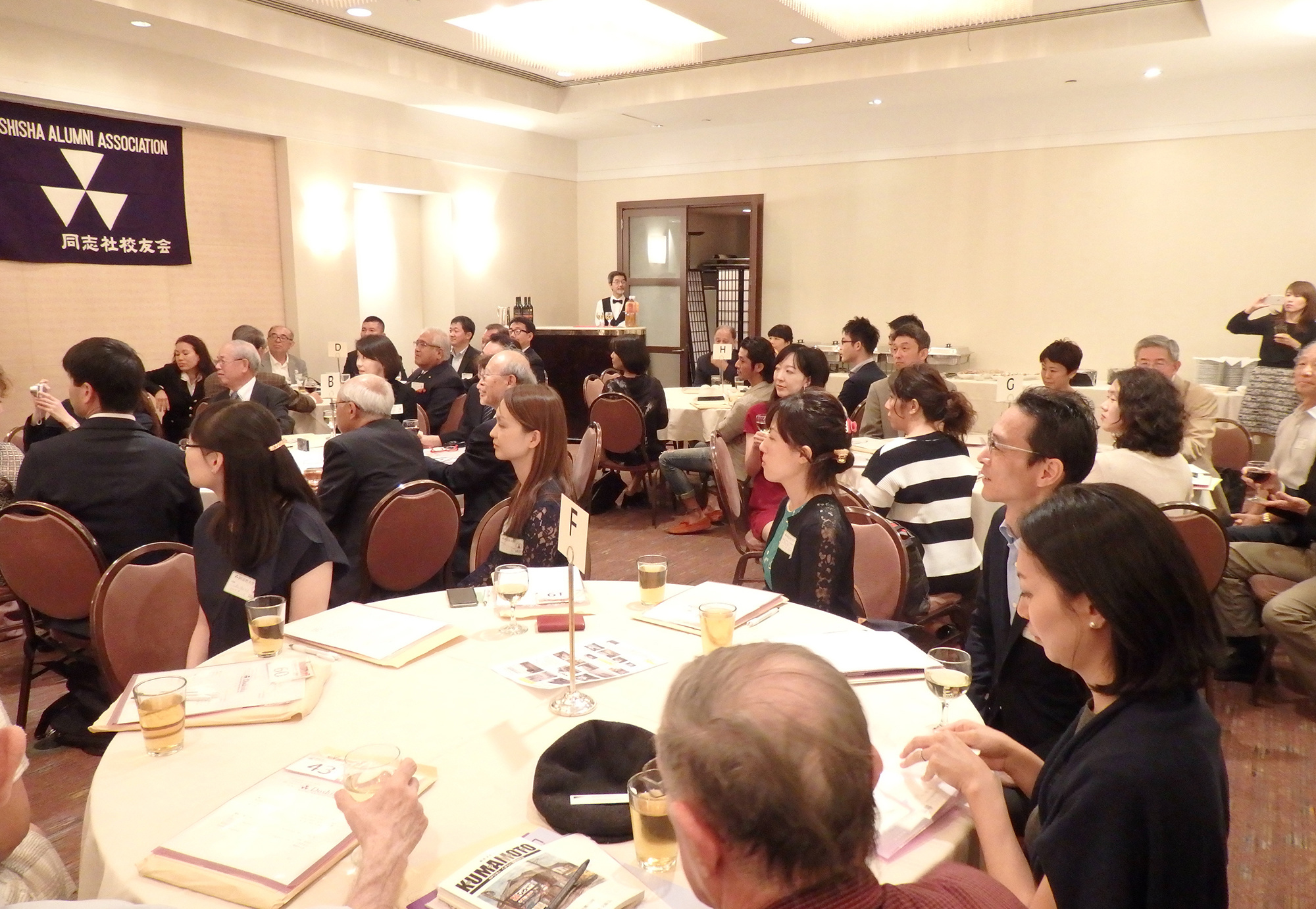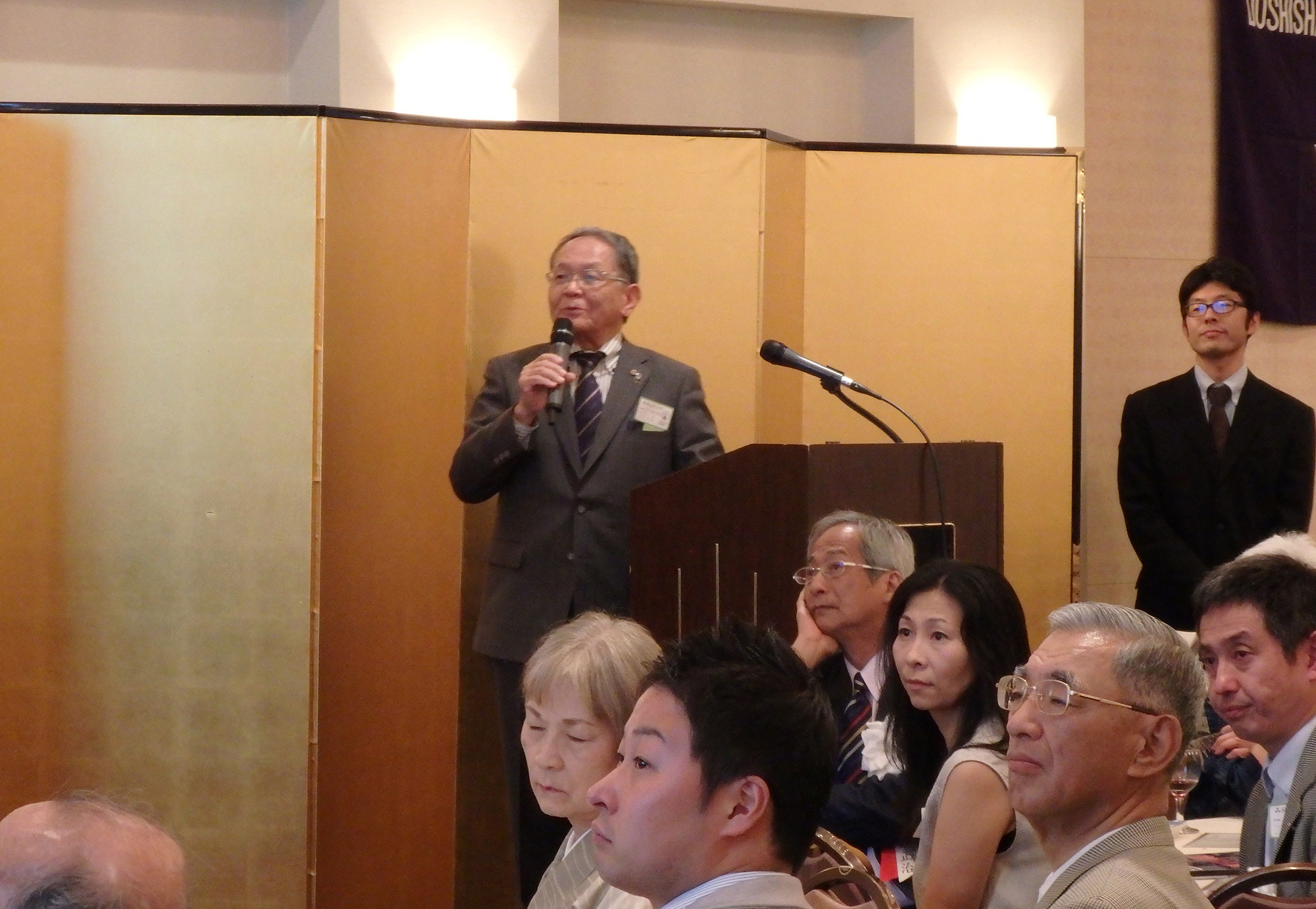 また、ワシントンからの参加者からも、「今回のように海外で大懇親会を開催することは、海外で活躍する会員にとっては大変刺激になり、新たな出会いと交流が深まるので、是非とも来年、再来年と引き続き海外での大懇親会を開催してほしい」とスピーチがあり、国際化支援事業委員長の中村副会長から、今回の催しを皮切りとして、今後も世界の同志社校友会支部との連携強化と、海外での大懇会開催を進めていきたいと挨拶がありました。