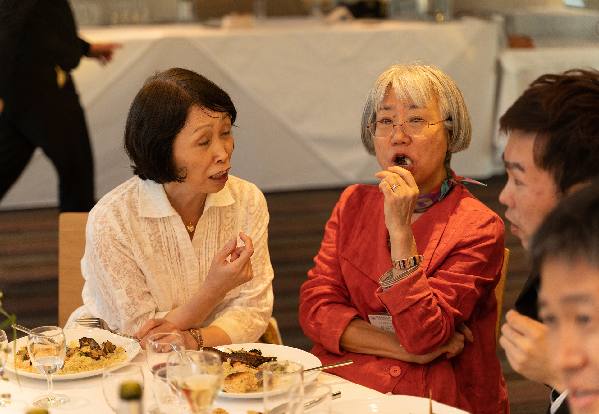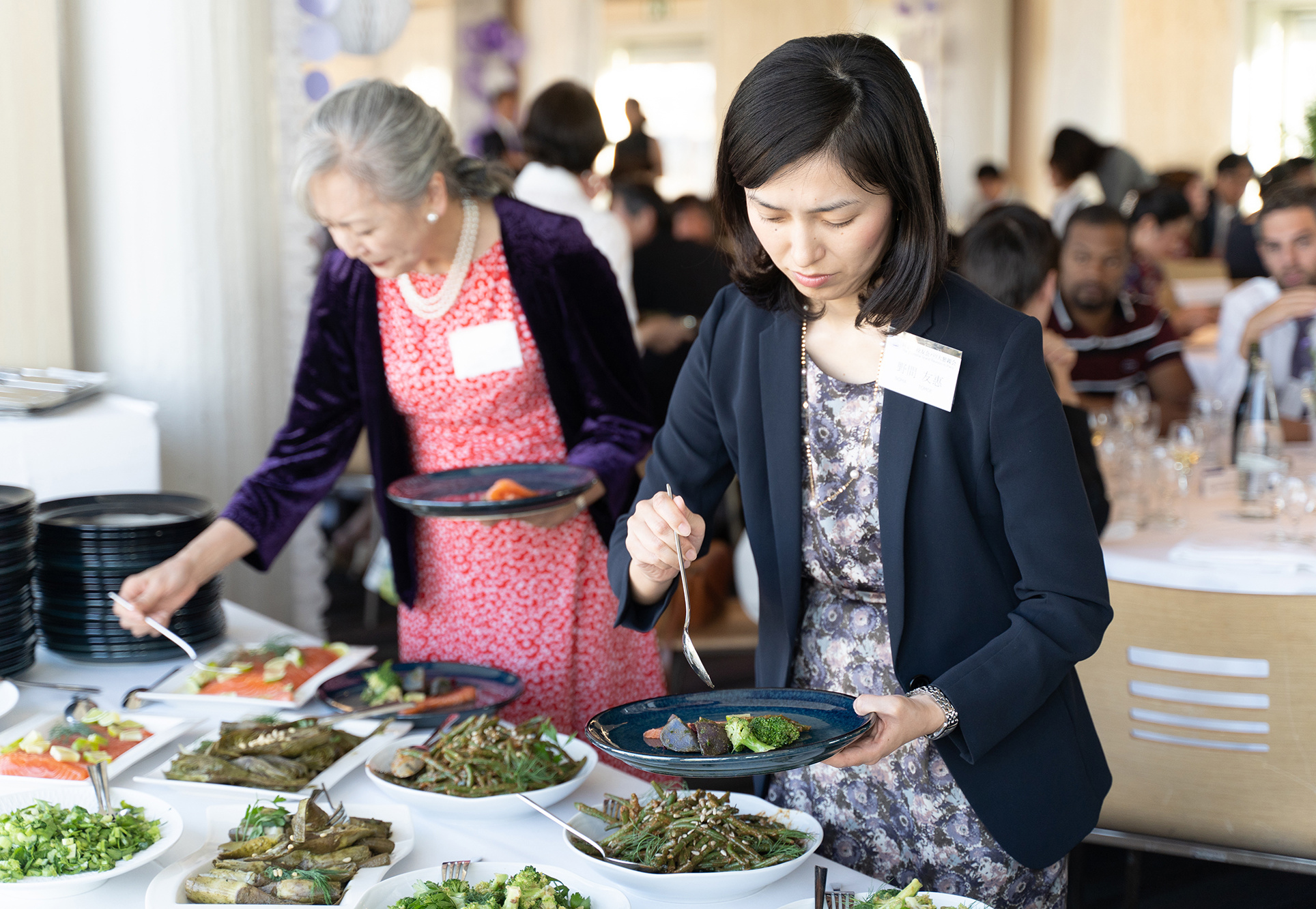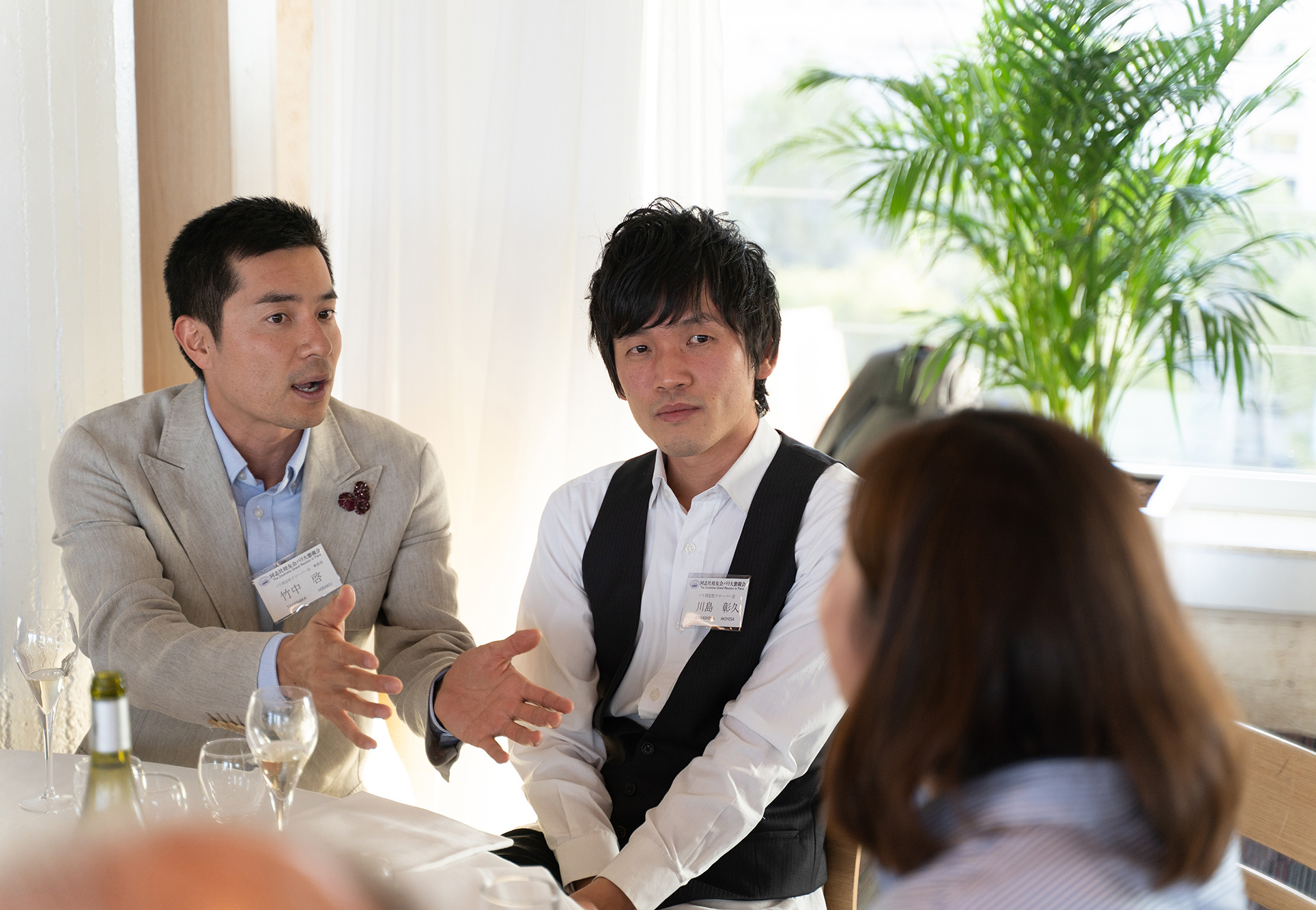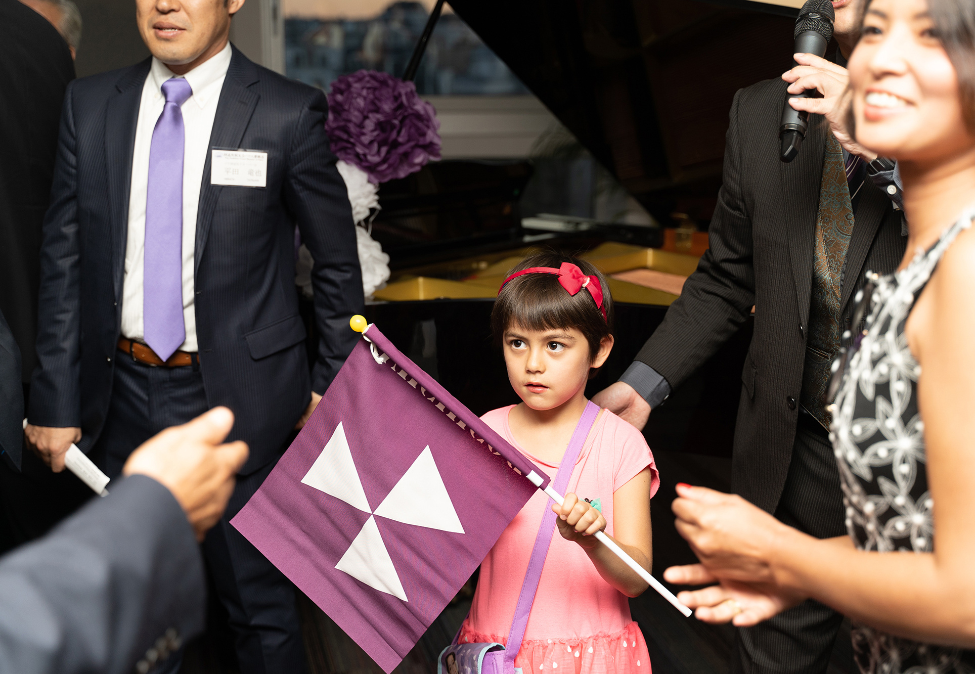 受付を済まされた方は、同志社スペイン会がプロデュースした「ハモン・イベリコ」生ハムにスパークリングワインで、開会までの時間を過ごされました。会場のバルコニーからはエッフェル塔が望める絶好のロケーションで、プロのカメラマンが記念写真の撮影サービス。そしていよいよ開会。