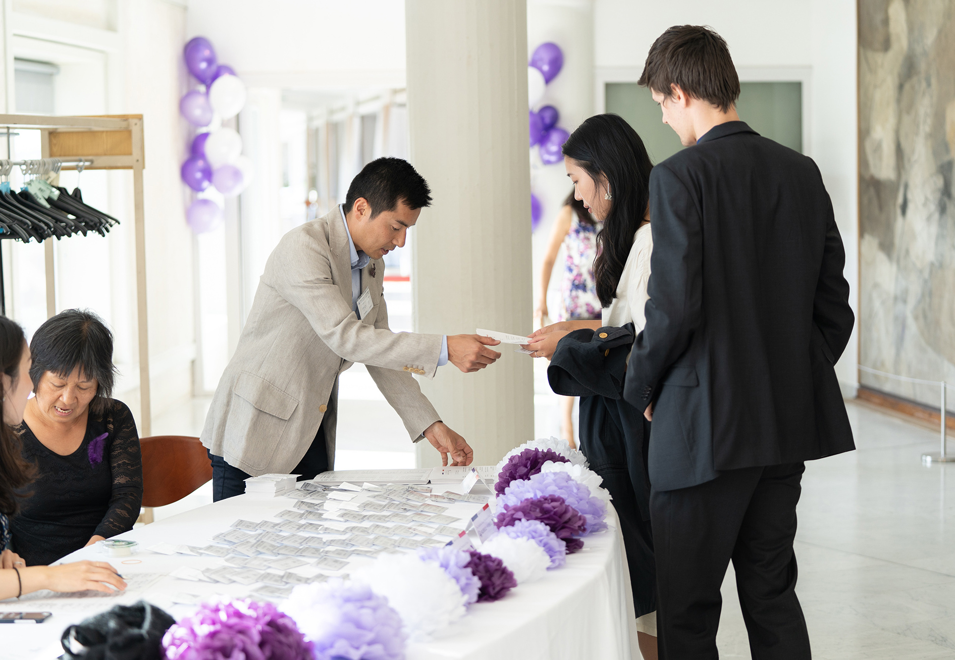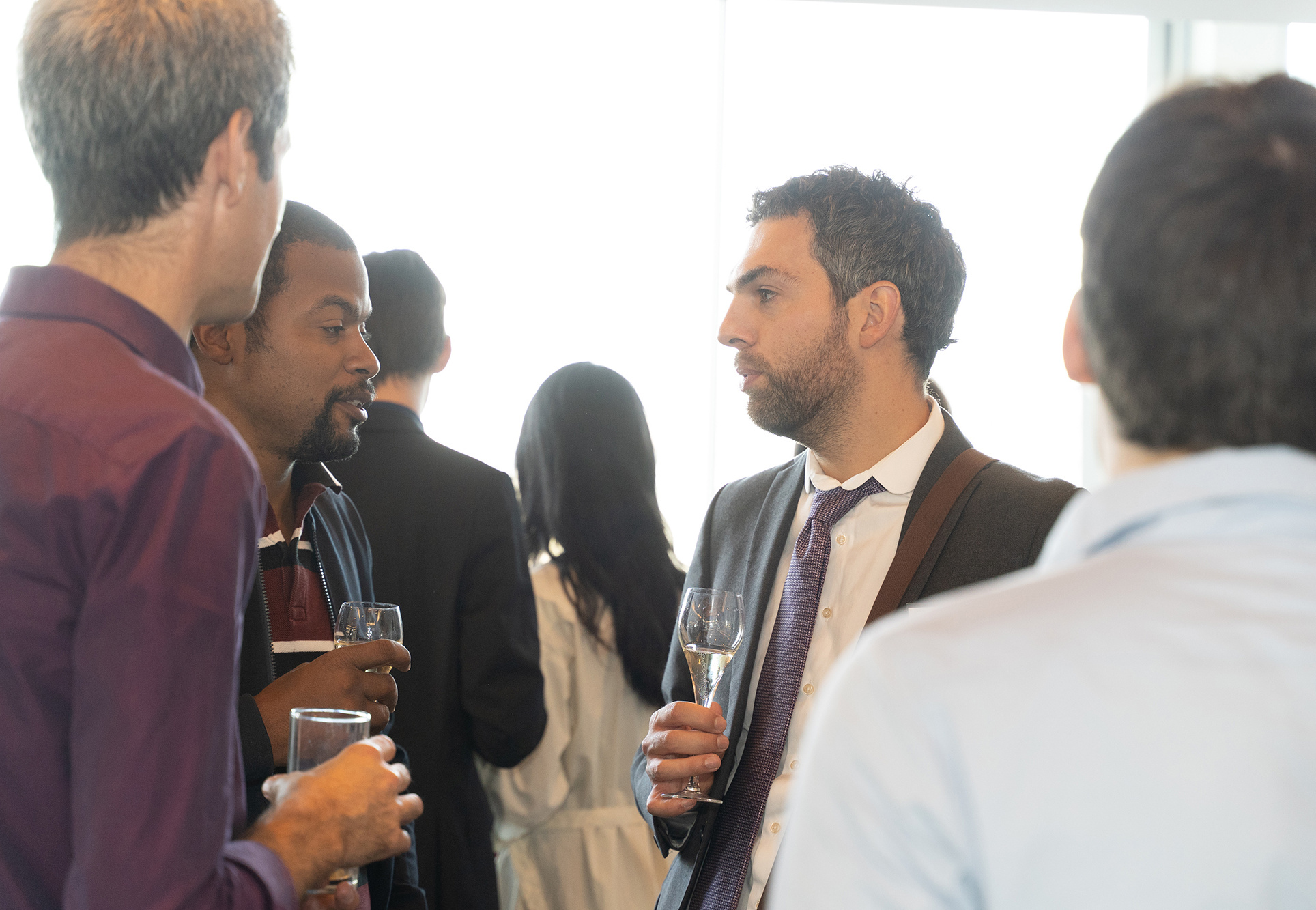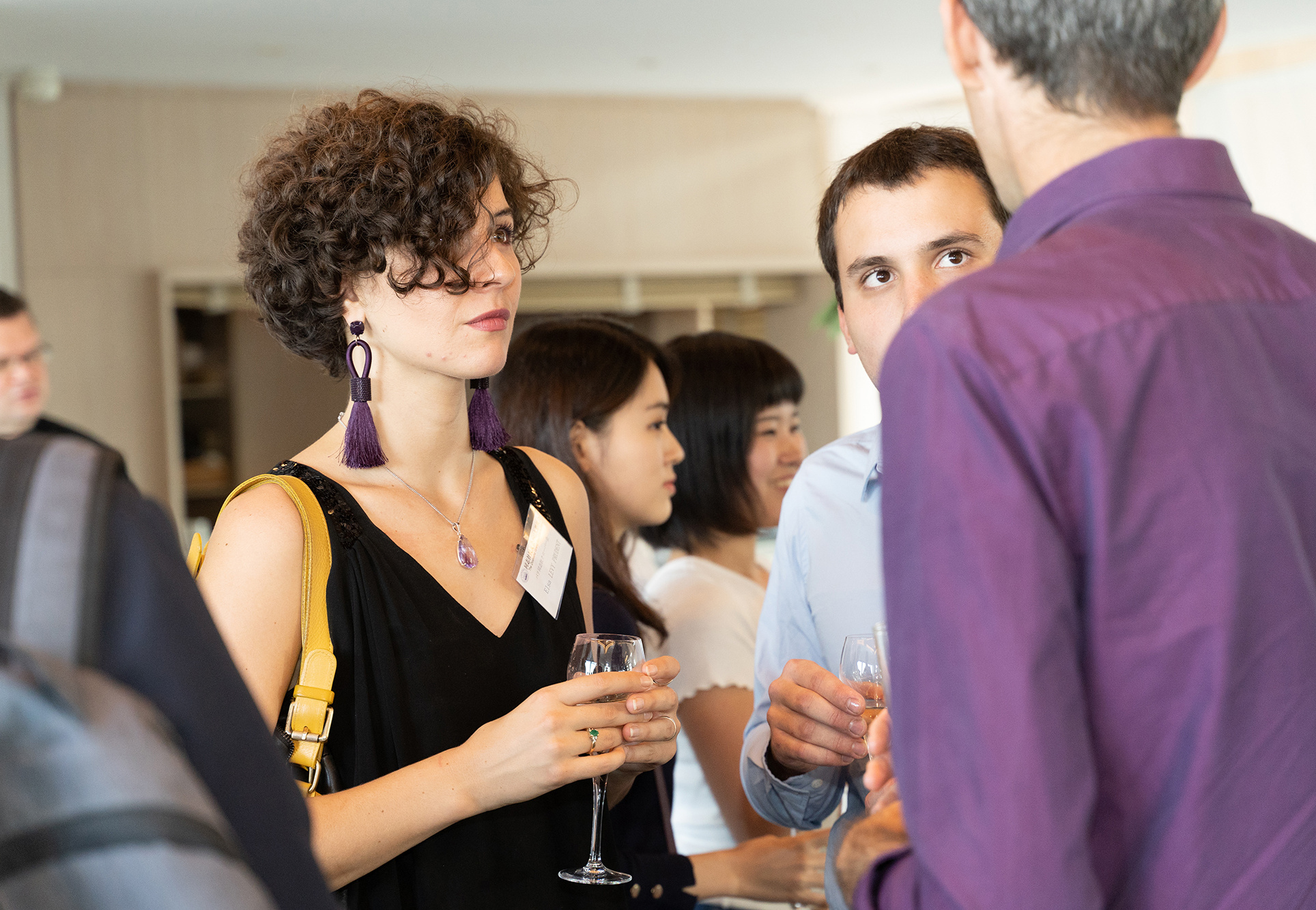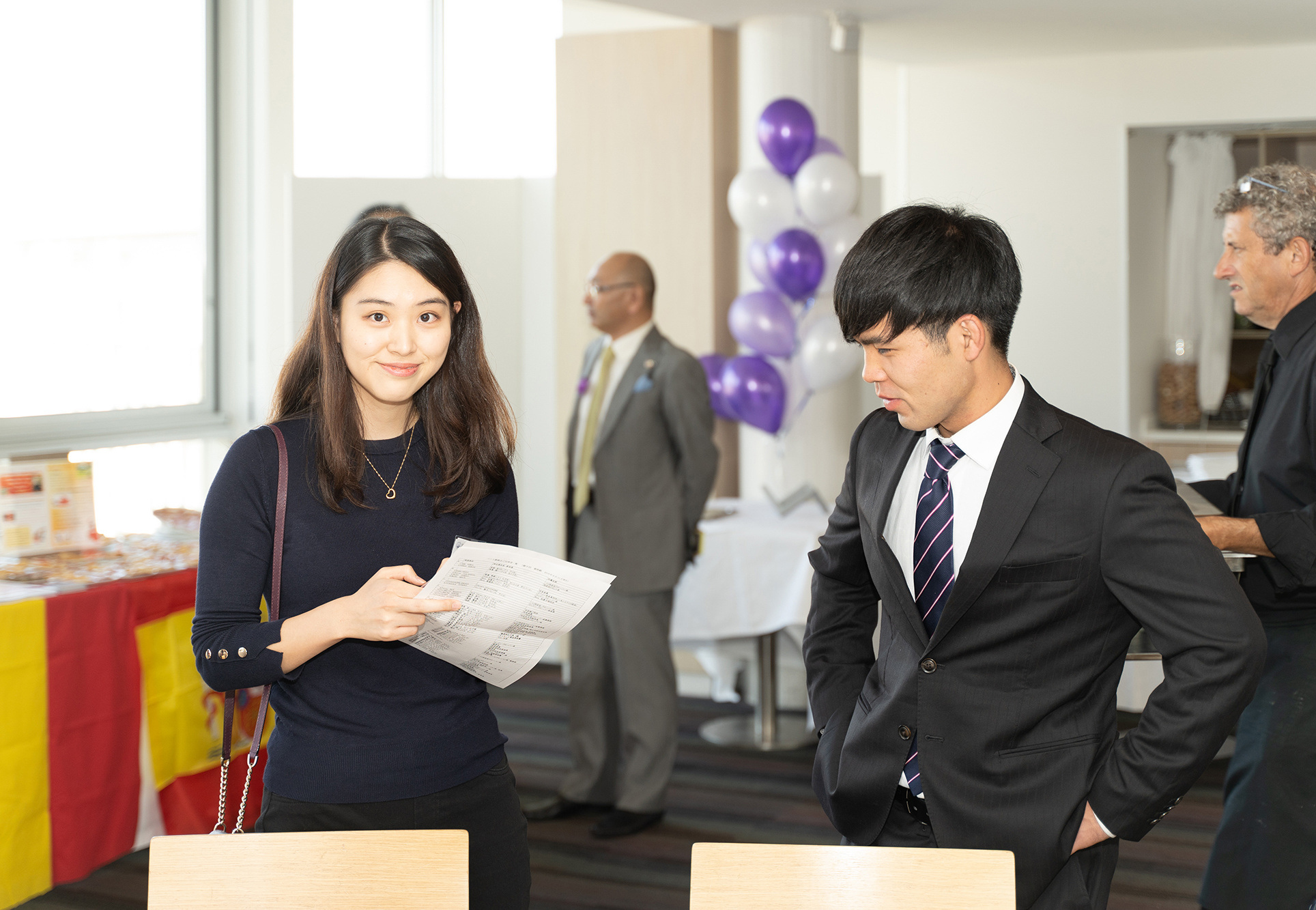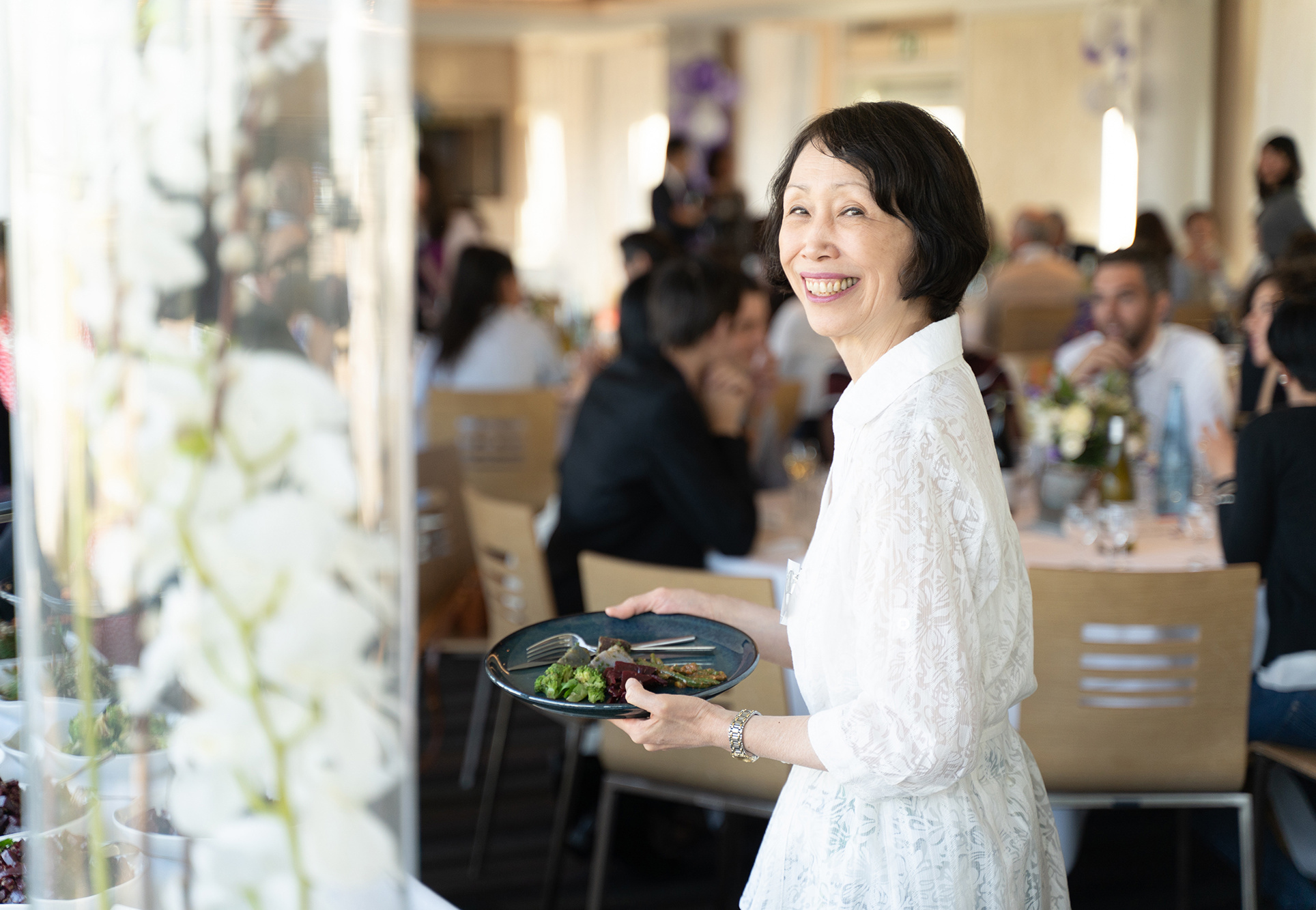 受付を済まされた方は、同志社スペイン会がプロデュースした「ハモン・イベリコ」生ハムにスパークリングワインで、開会までの時間を過ごされました。会場のバルコニーからはエッフェル塔が望める絶好のロケーションで、プロのカメラマンが記念写真の撮影サービス。そしていよいよ開会。