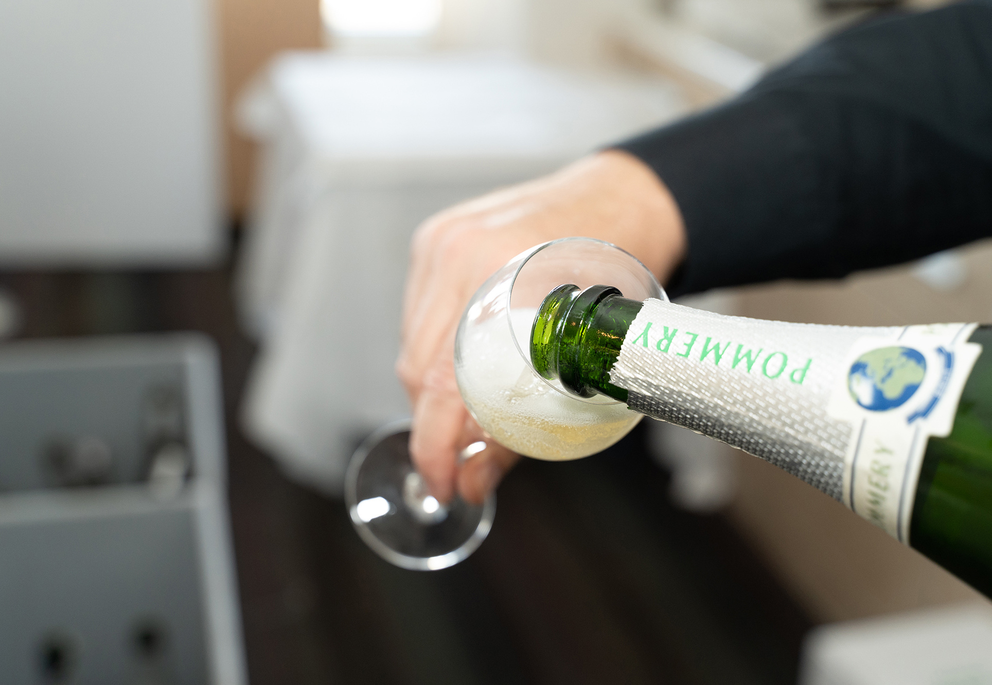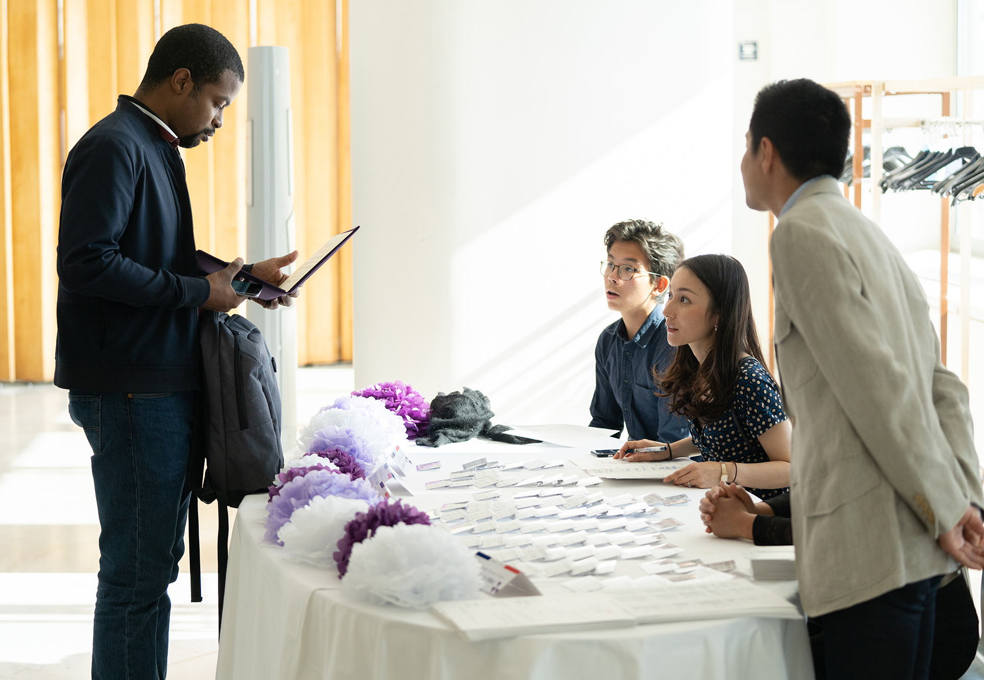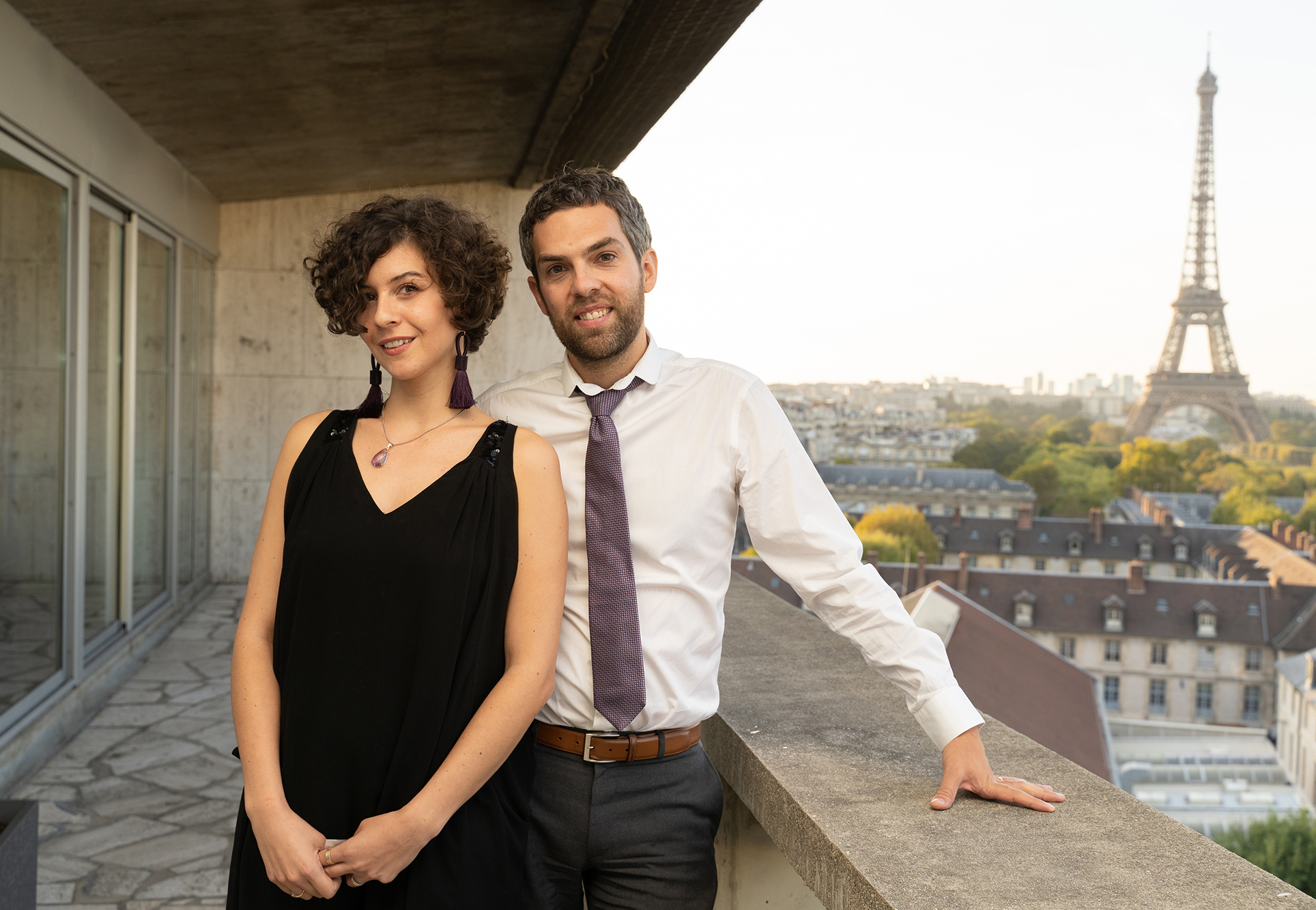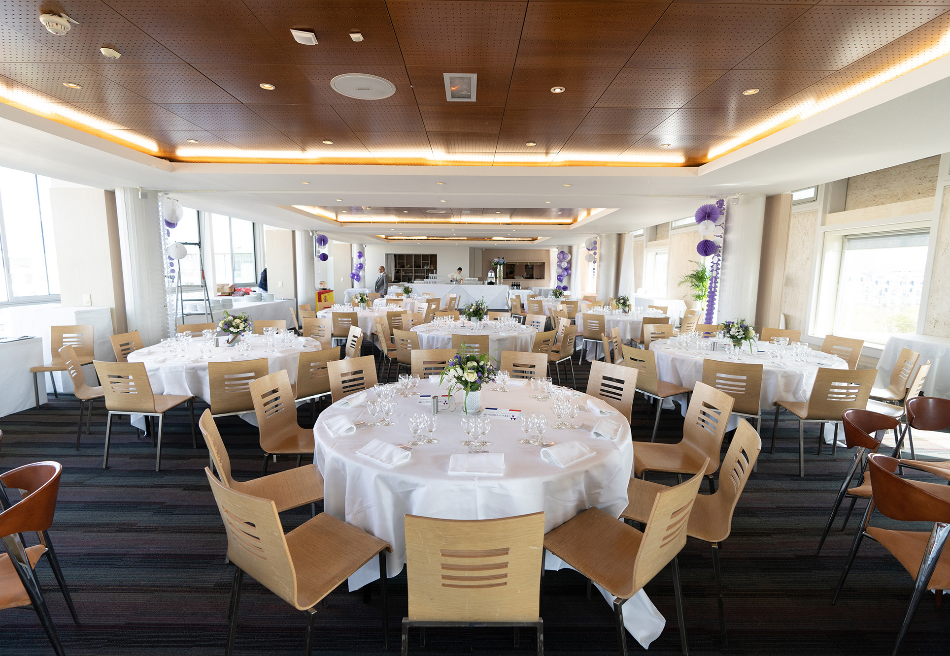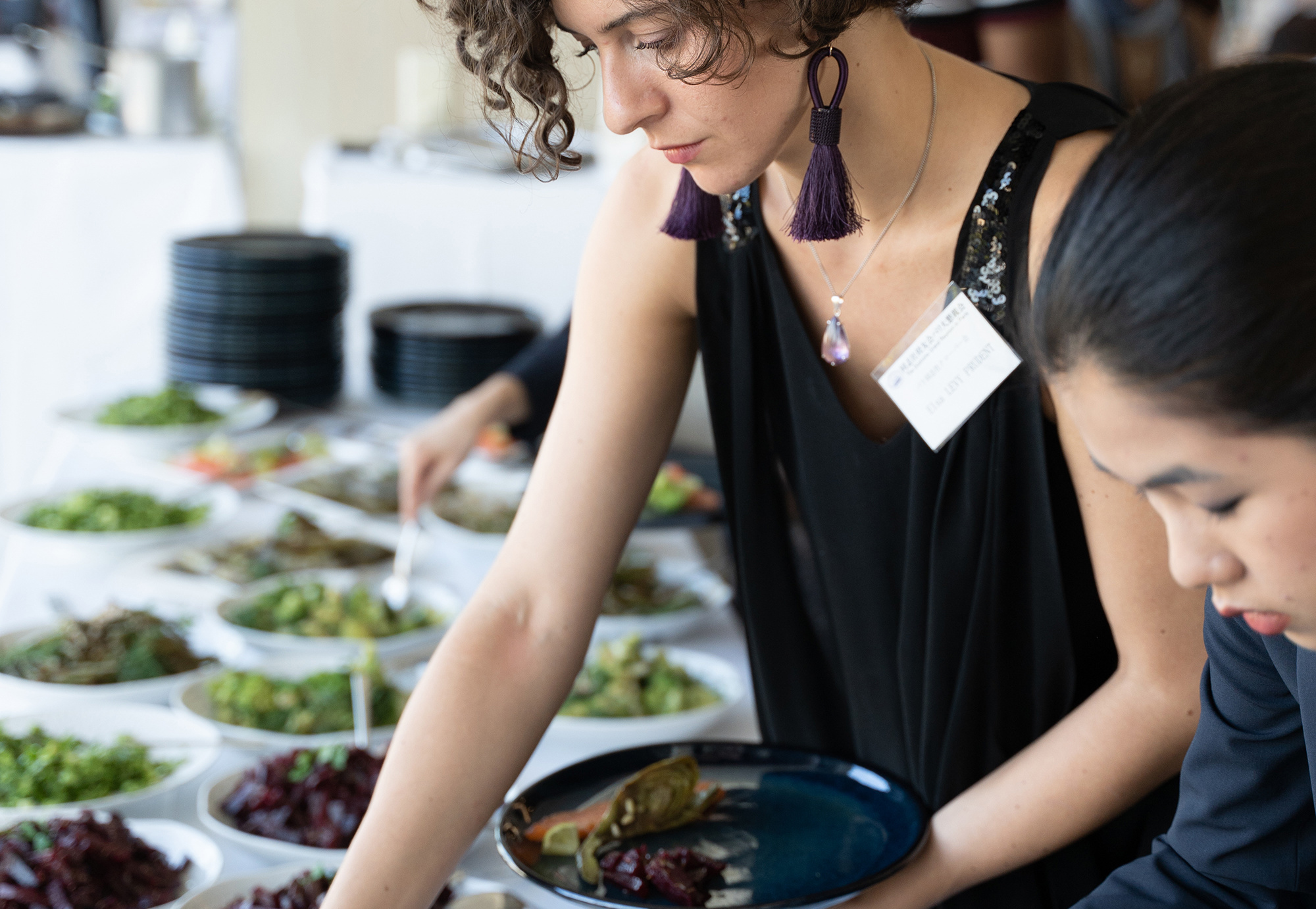 受付を済まされた方は、同志社スペイン会がプロデュースした「ハモン・イベリコ」生ハムにスパークリングワインで、開会までの時間を過ごされました。会場のバルコニーからはエッフェル塔が望める絶好のロケーションで、プロのカメラマンが記念写真の撮影サービス。そしていよいよ開会。