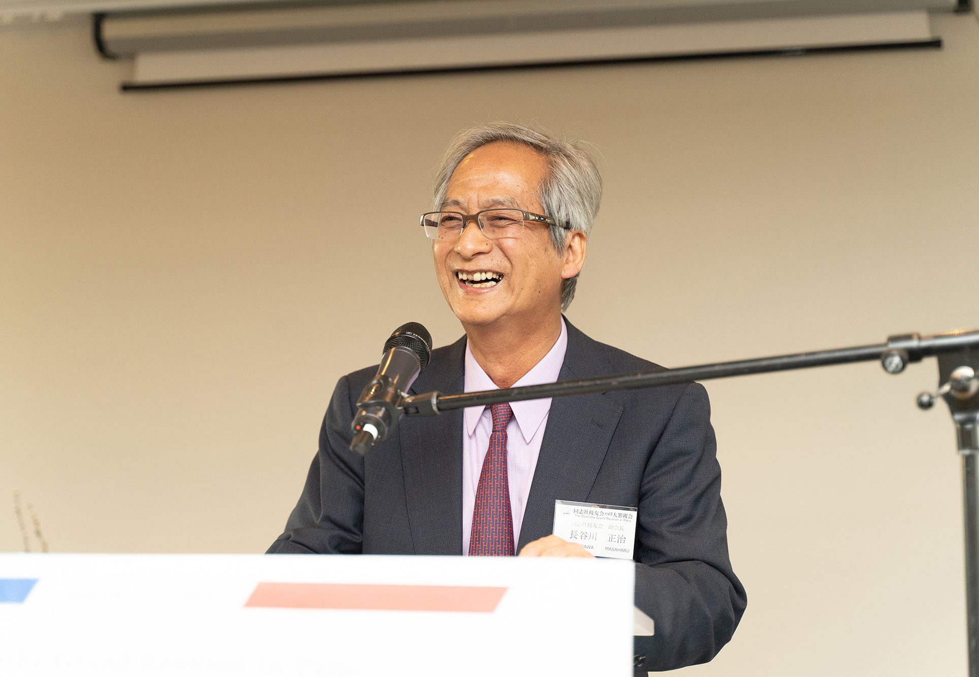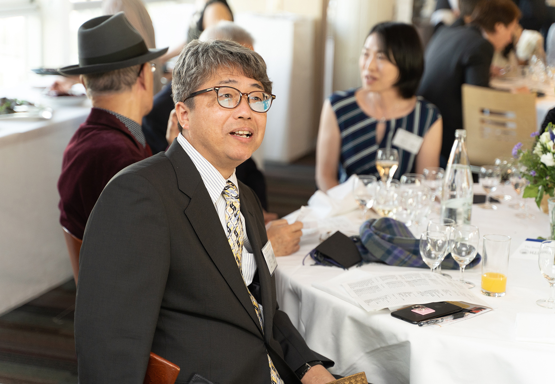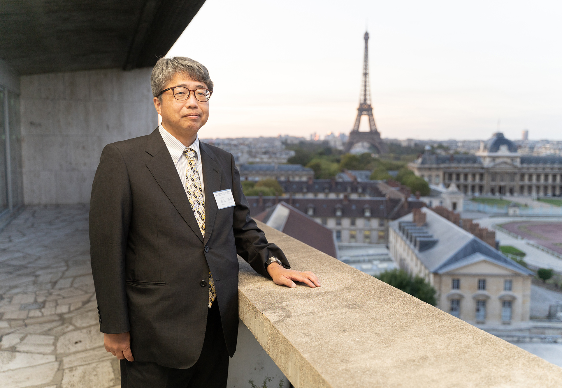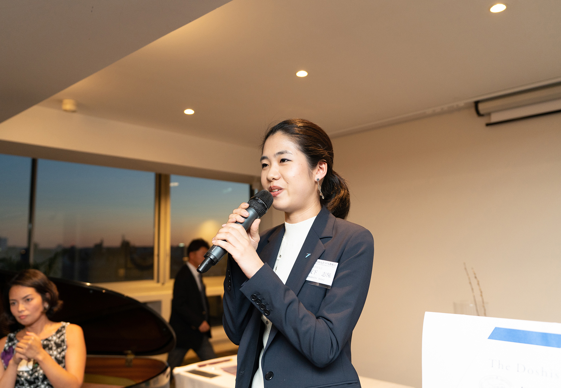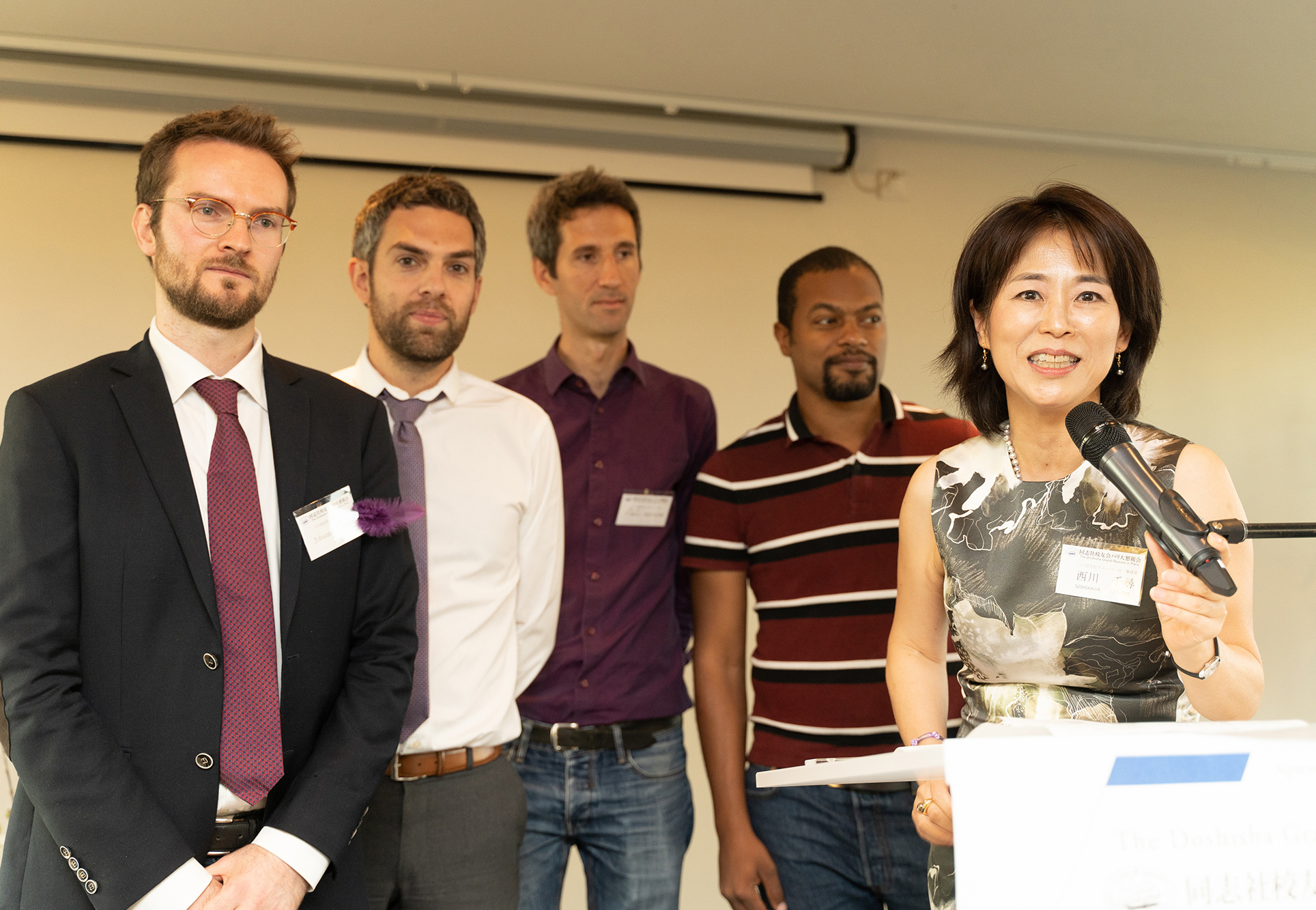 次に来賓を代表し学校法人同志社八田総長・理事長より、ここフランスは、日本初といわれる海外との大学間ダブルディグリープログラムを同志社が締結した地である。創立150周年となる2025年にはあらゆる分野における最先端、第一線で活躍できる「フロントライン同志社」を目指していると語られました。