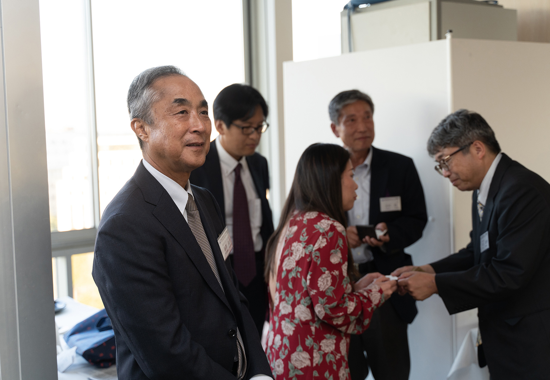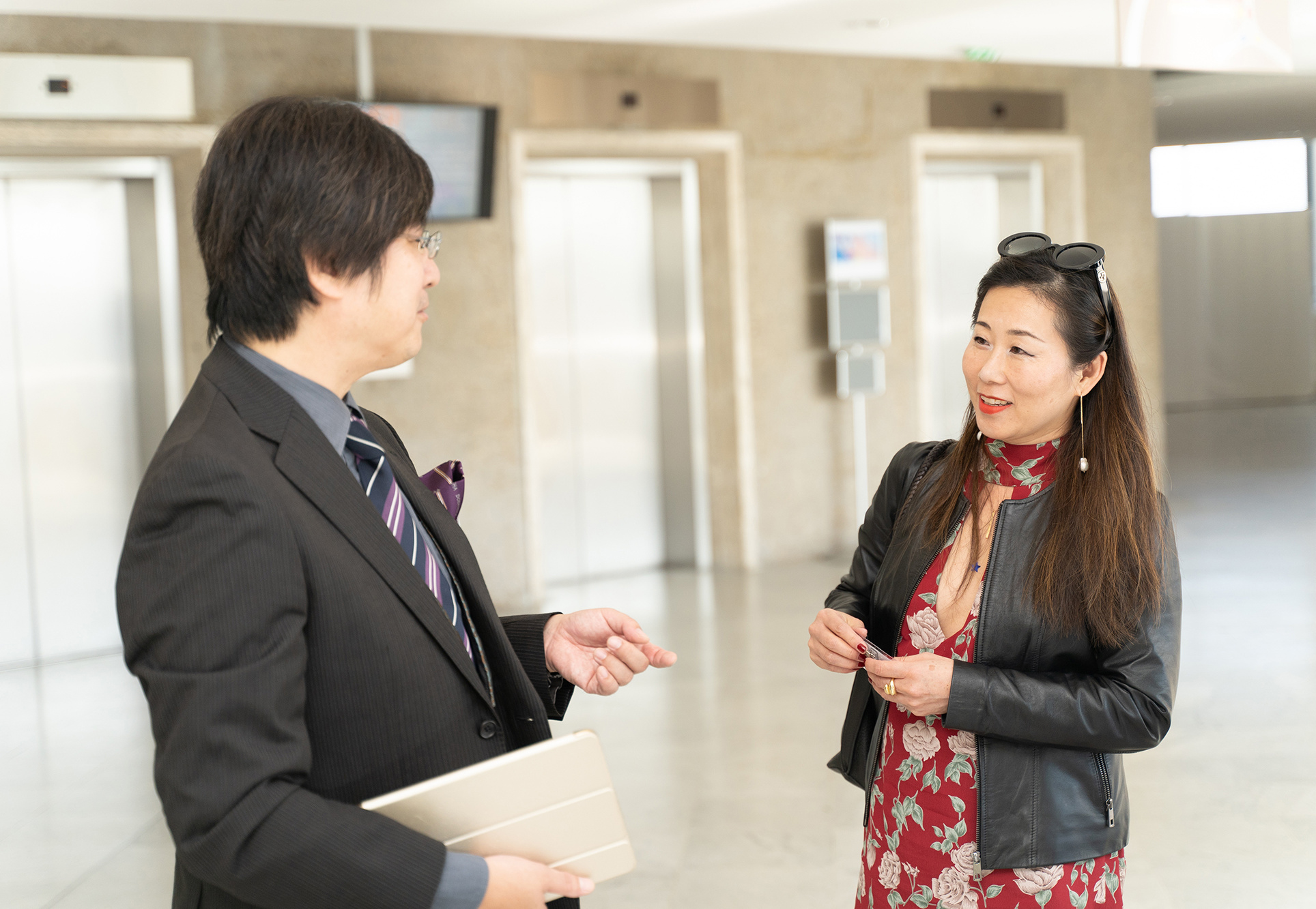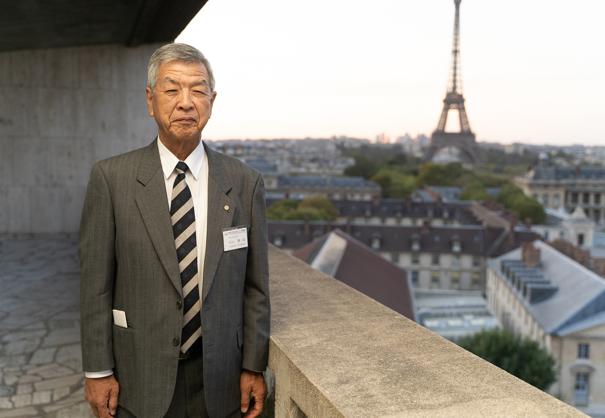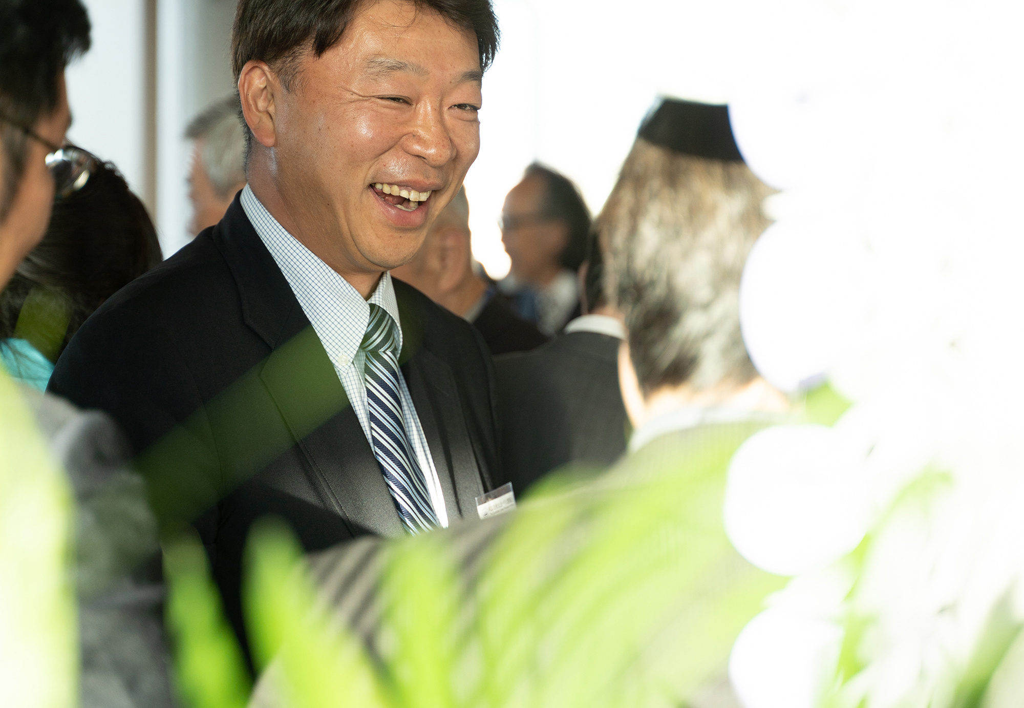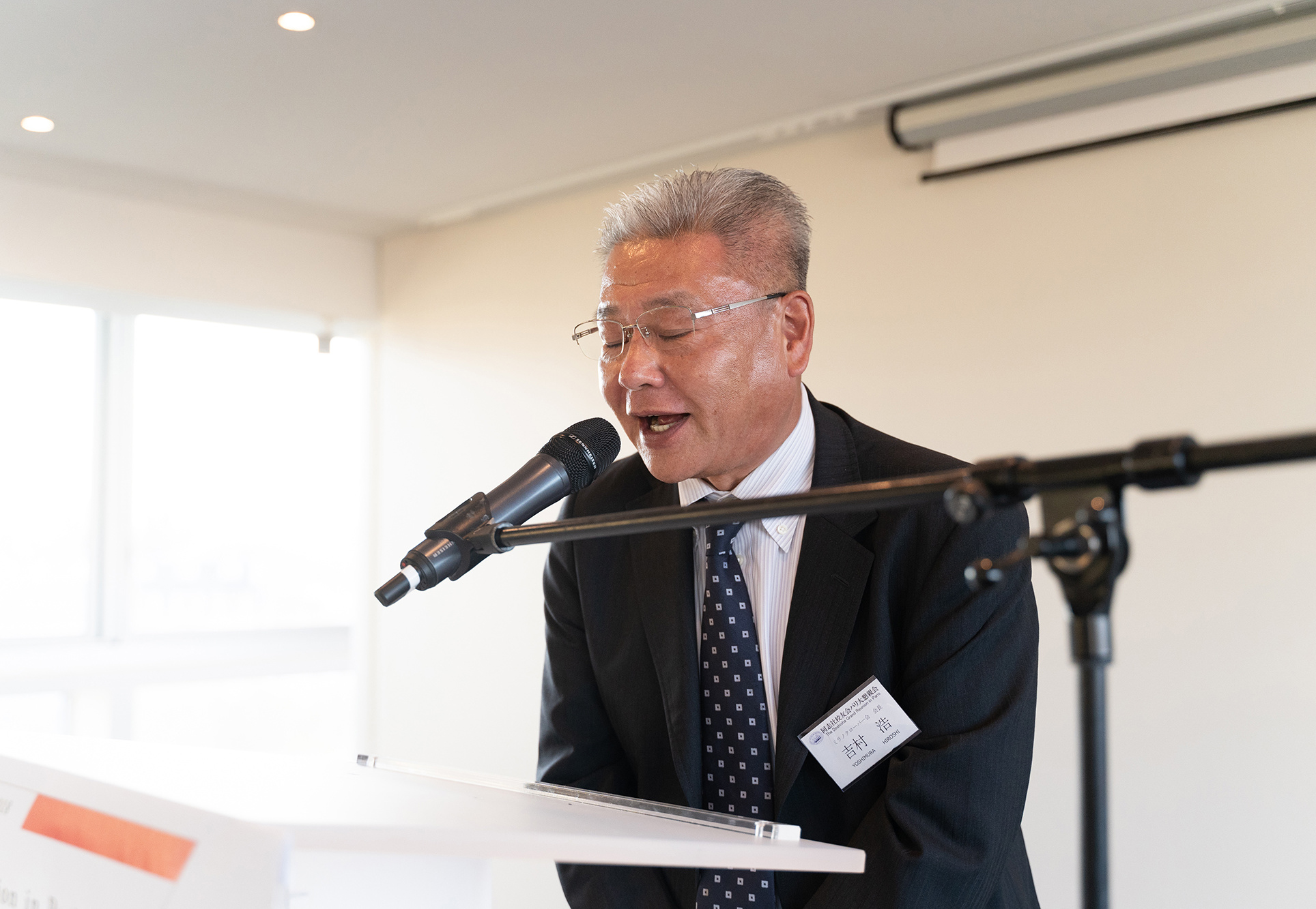 次に来賓を代表し学校法人同志社八田総長・理事長より、ここフランスは、日本初といわれる海外との大学間ダブルディグリープログラムを同志社が締結した地である。創立150周年となる2025年にはあらゆる分野における最先端、第一線で活躍できる「フロントライン同志社」を目指していると語られました。