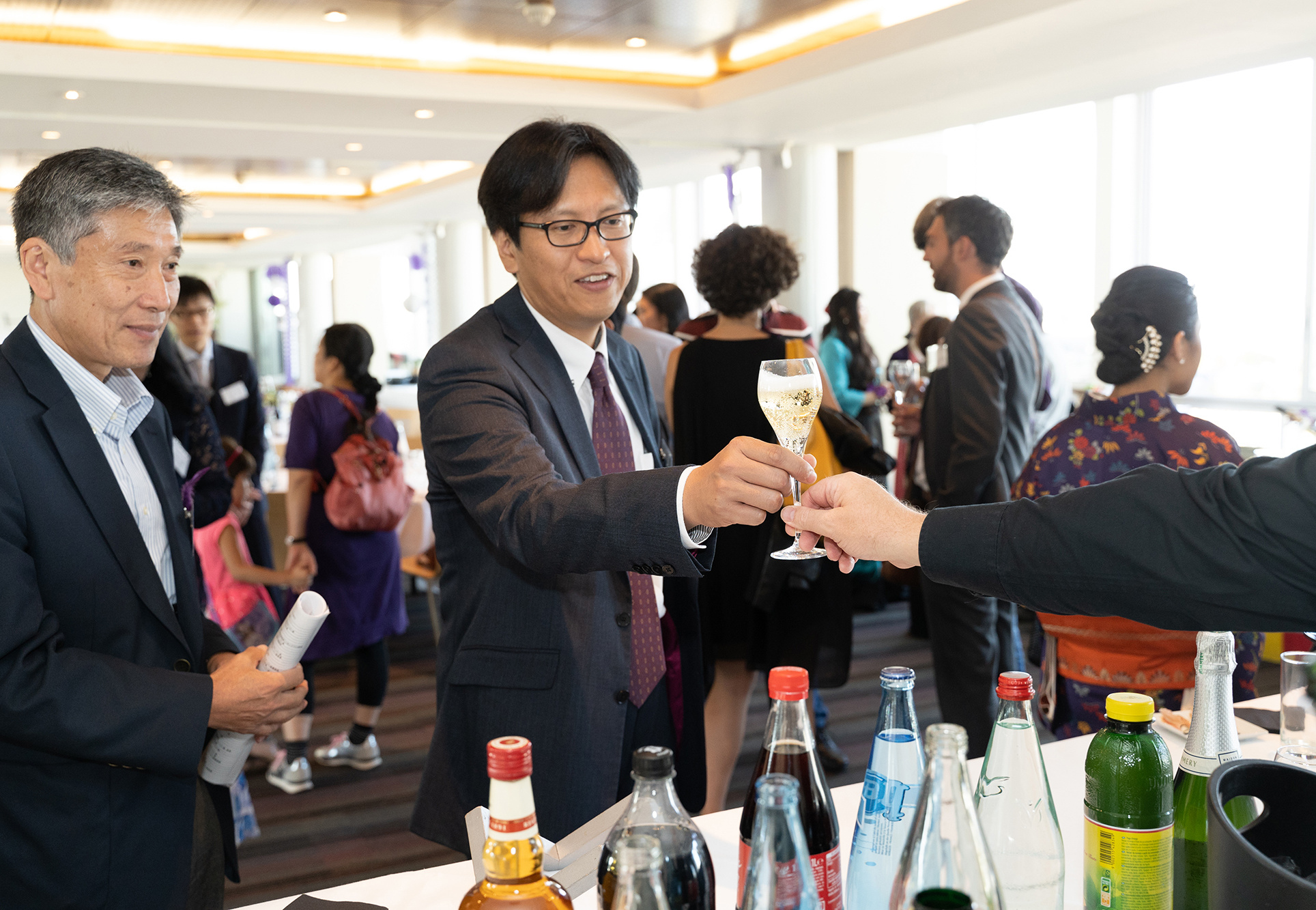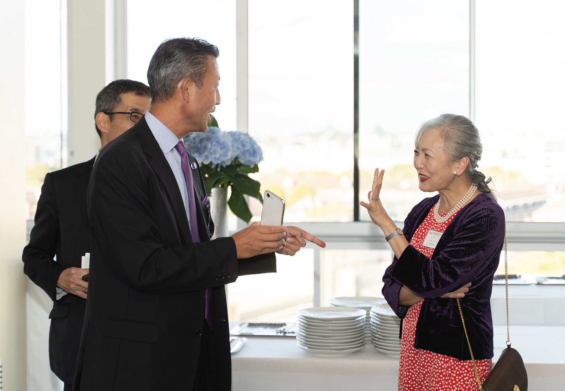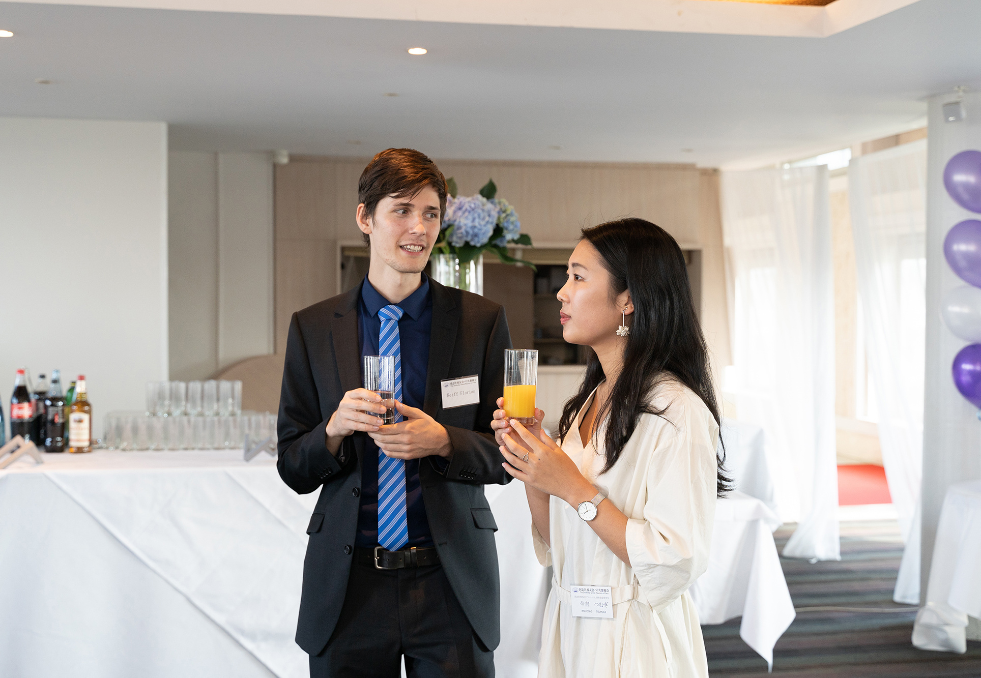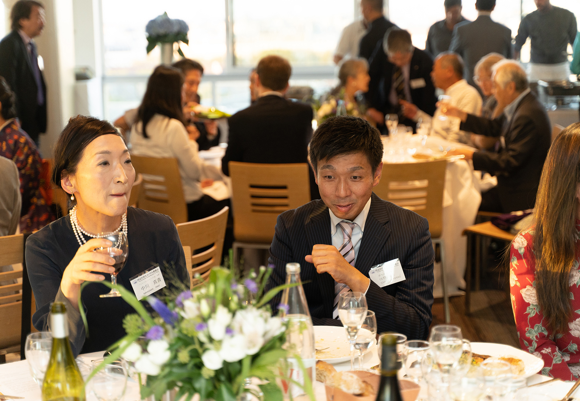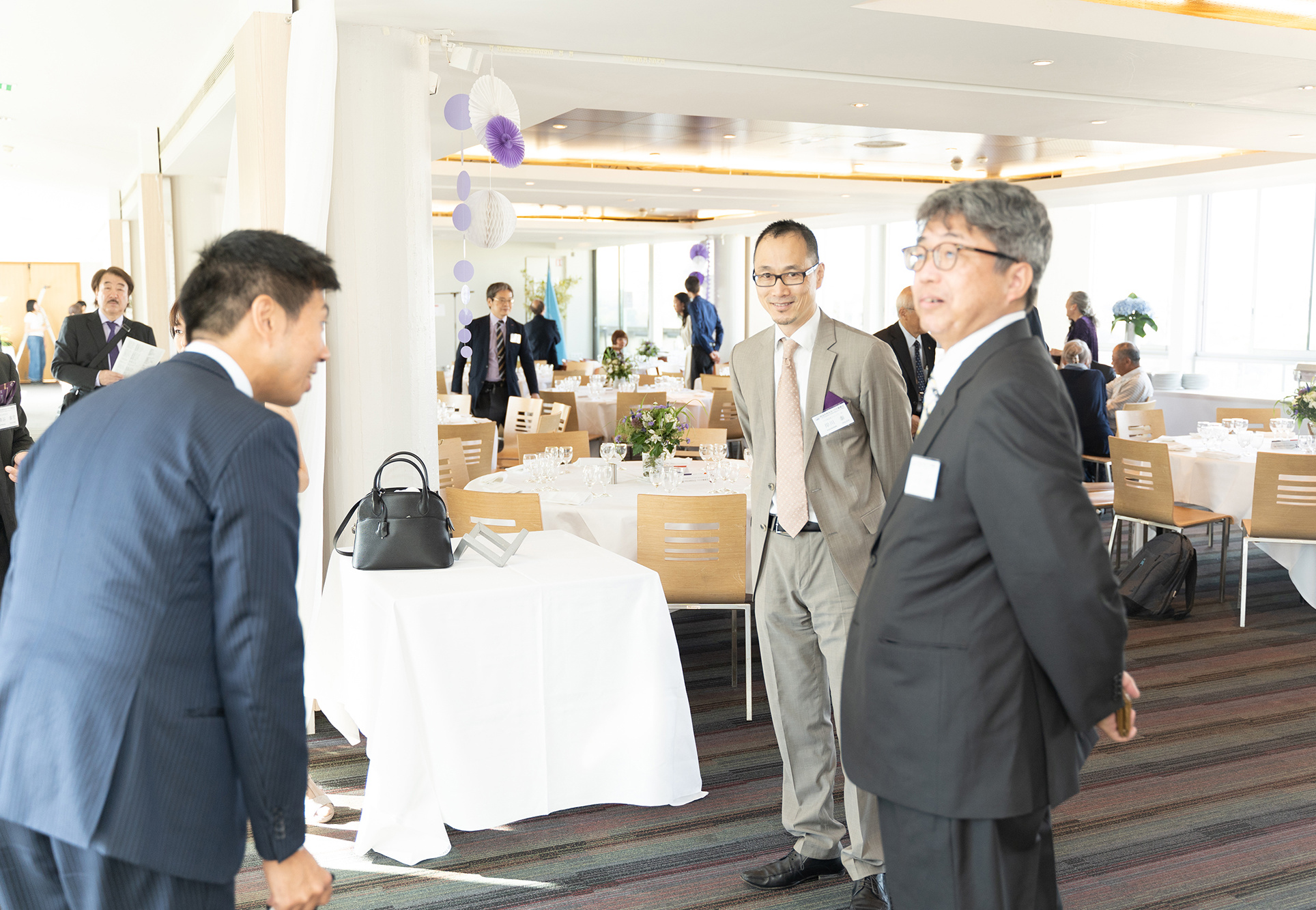 同志社大学松岡学長からは、ヨーロッパ、特にフランスとは非常に連携が深く、大学のグローバル化を進めるうえで重要な拠点のひとつとなっている。また2017年度からドイツの名門大学であるテュービンゲン大学内に「同志社大学テュービンゲンEUキャンパス」を設置し、はじめて海外にキャンパスと名の付く事業を展開する。事務所では学生リクルーティングなどをメインに実施してきたが、このEUキャンパスでは、留学プログラムや、交換客員研究員の活動拠点になるなど、教育・研究面で密接なつながりを有したいと考えているとご挨拶のあと、乾杯の発声をいただきました。