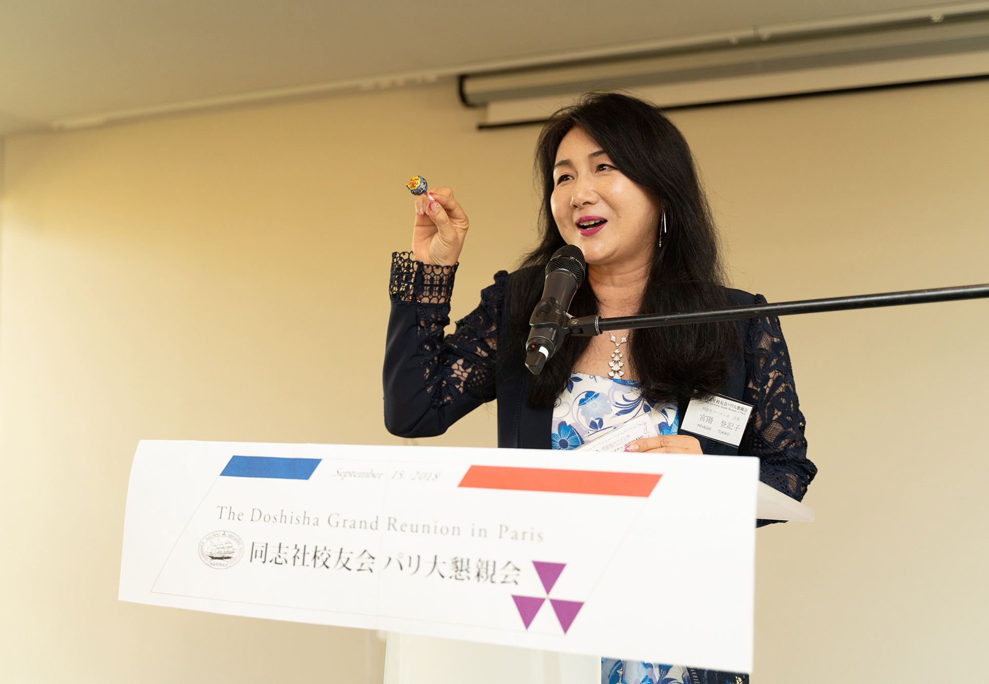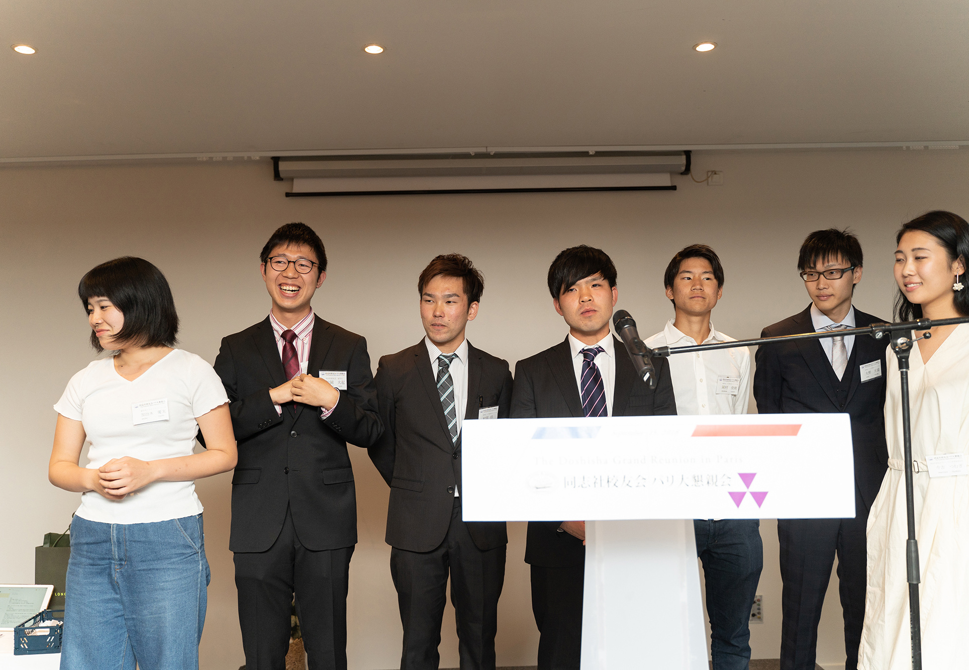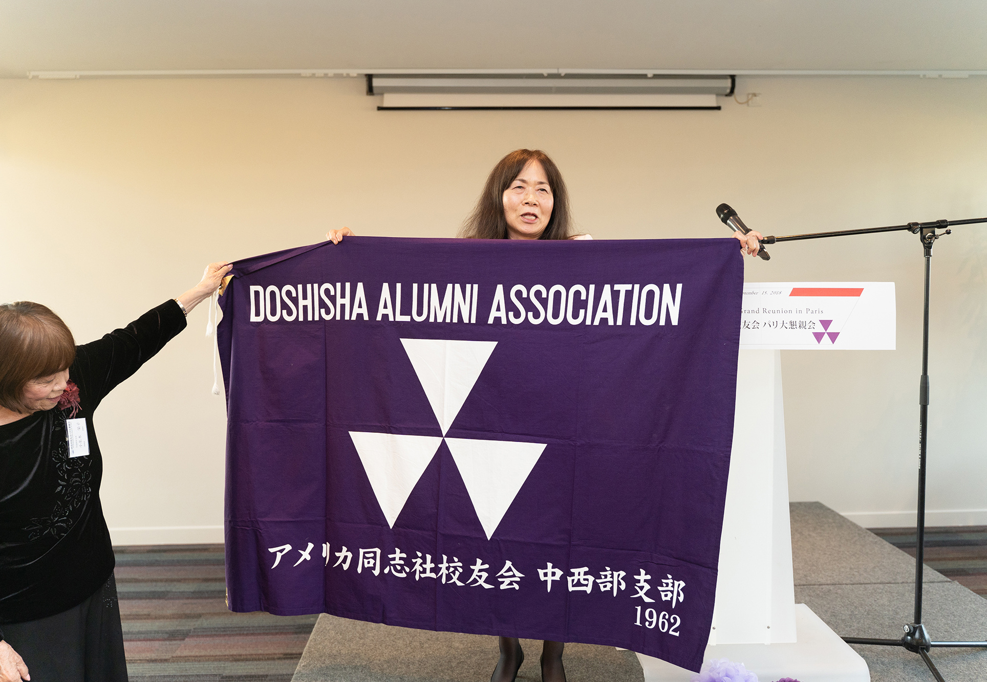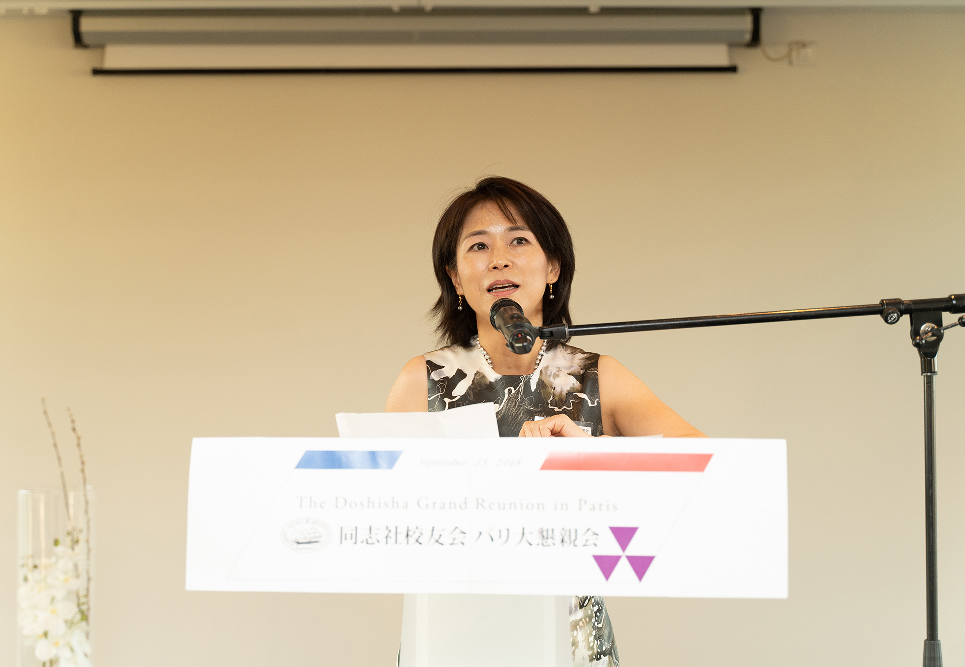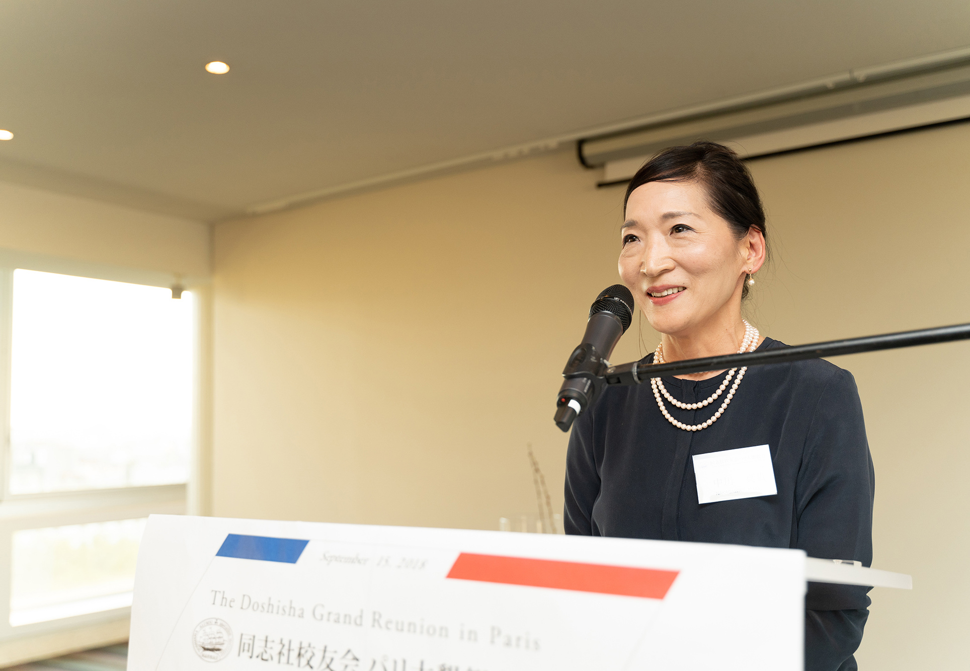 同志社校友会井上会長から、ここ数年の同志社校友会のグローバル化のスピードには目を見張るものがあり、ここパリはまさに同志社校友会グローバリゼーションの中核をなすものである。今後の校友会ネットワークの発展に向け、海外支部との連携を更に深めたいとご挨拶がありました。