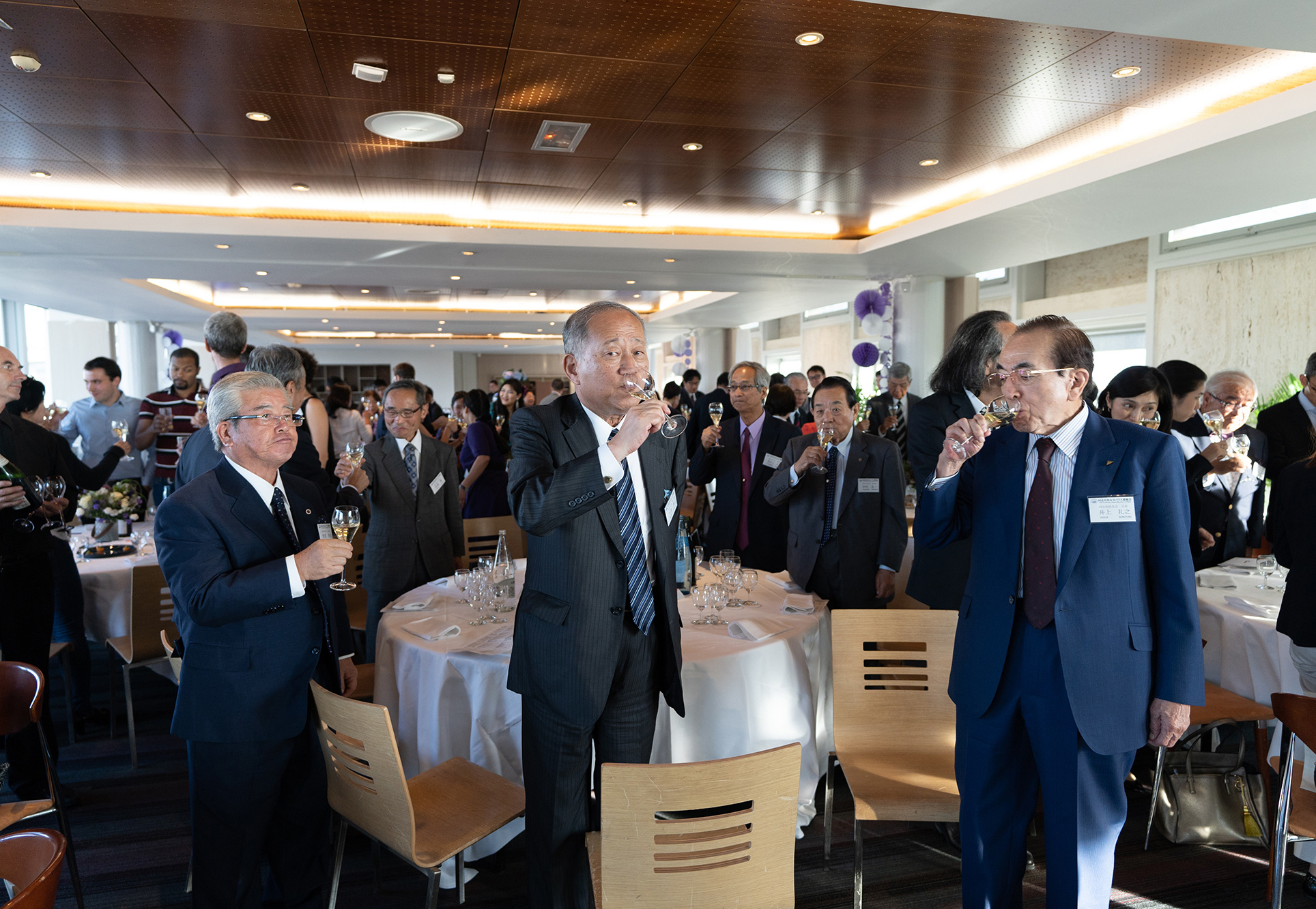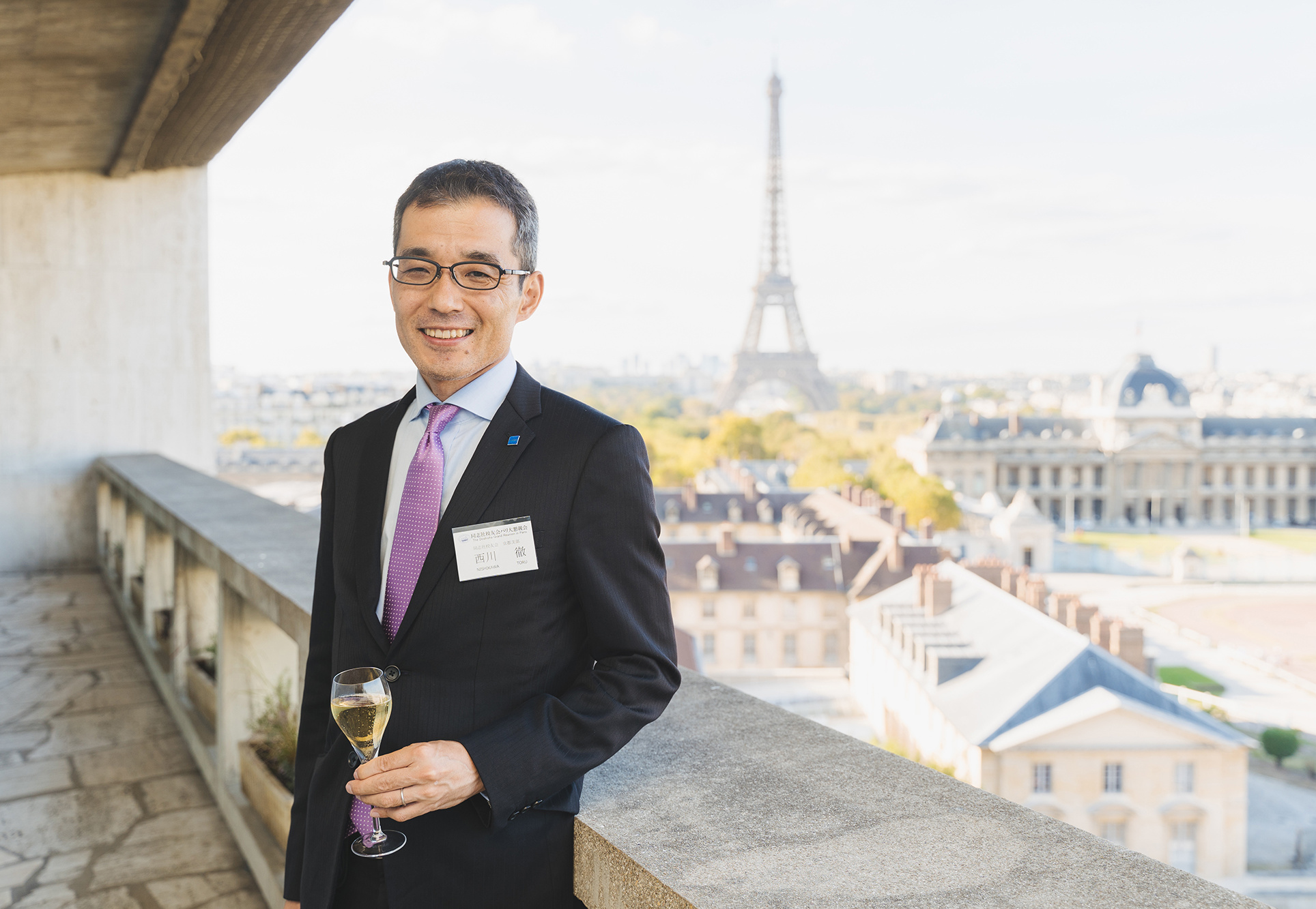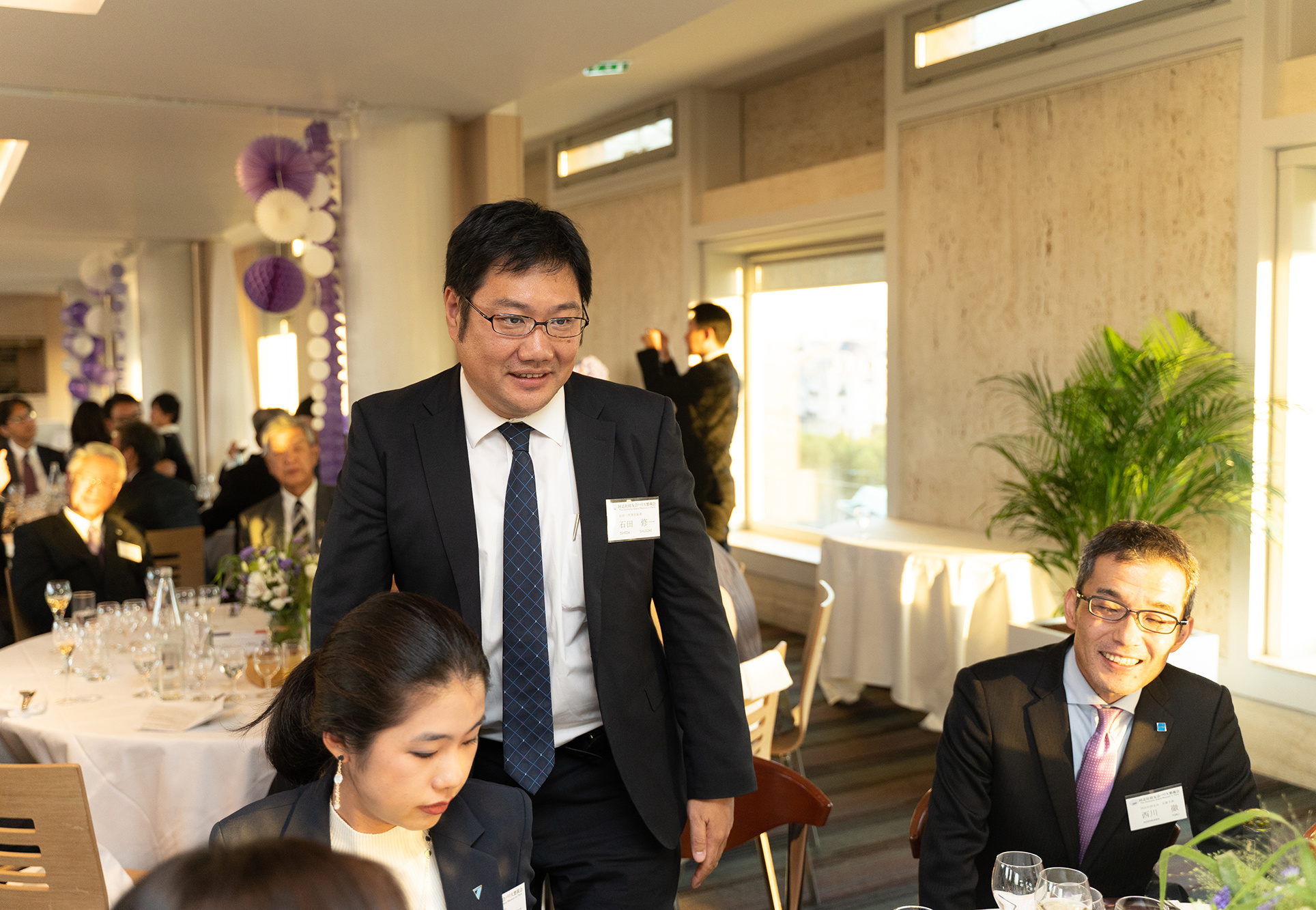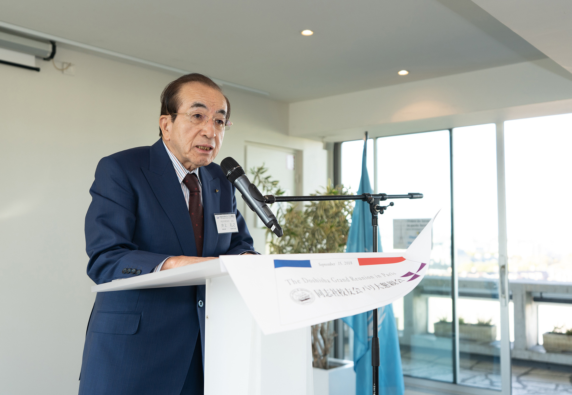 同志社校友会井上会長から、ここ数年の同志社校友会のグローバル化のスピードには目を見張るものがあり、ここパリはまさに同志社校友会グローバリゼーションの中核をなすものである。今後の校友会ネットワークの発展に向け、海外支部との連携を更に深めたいとご挨拶がありました。