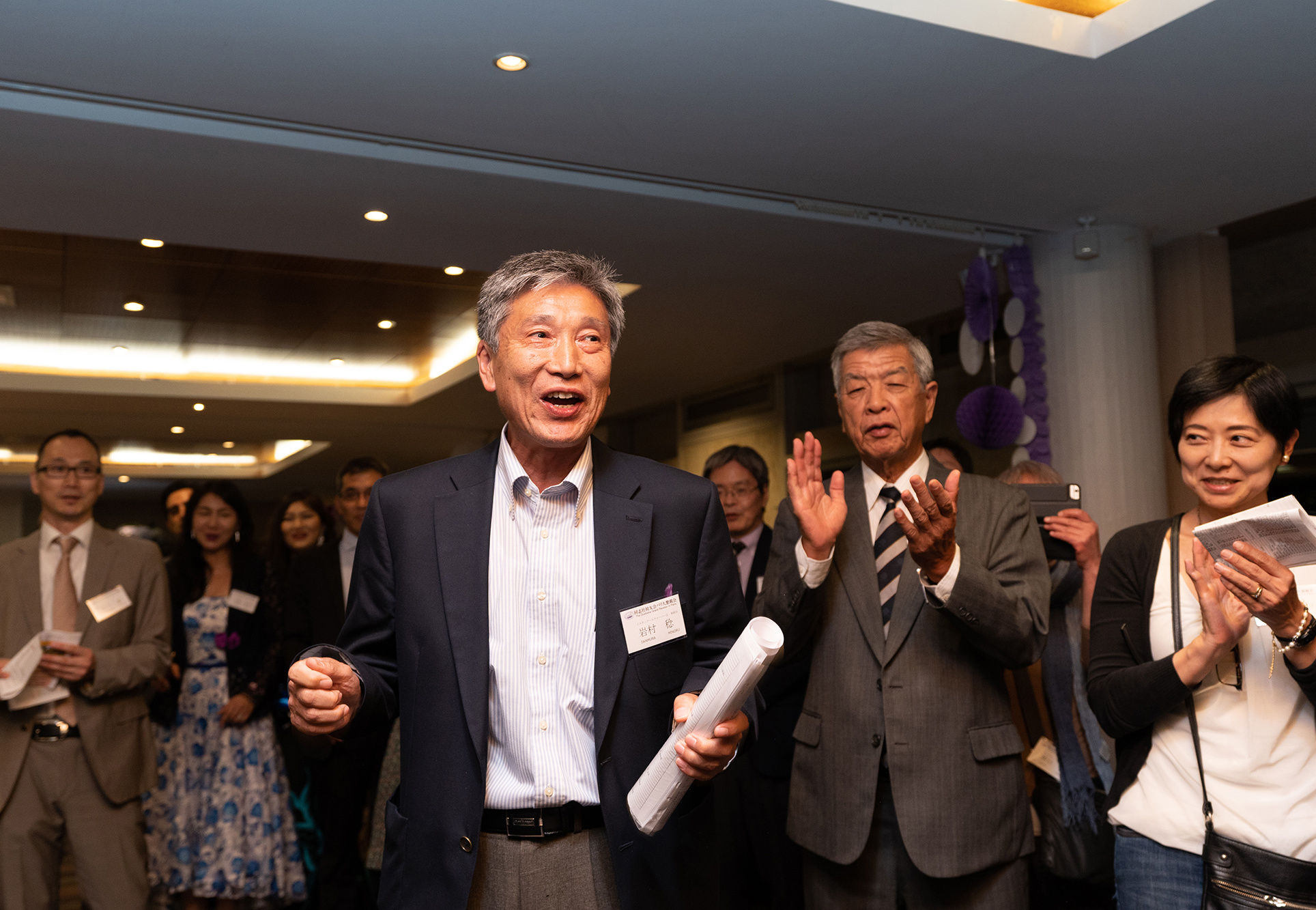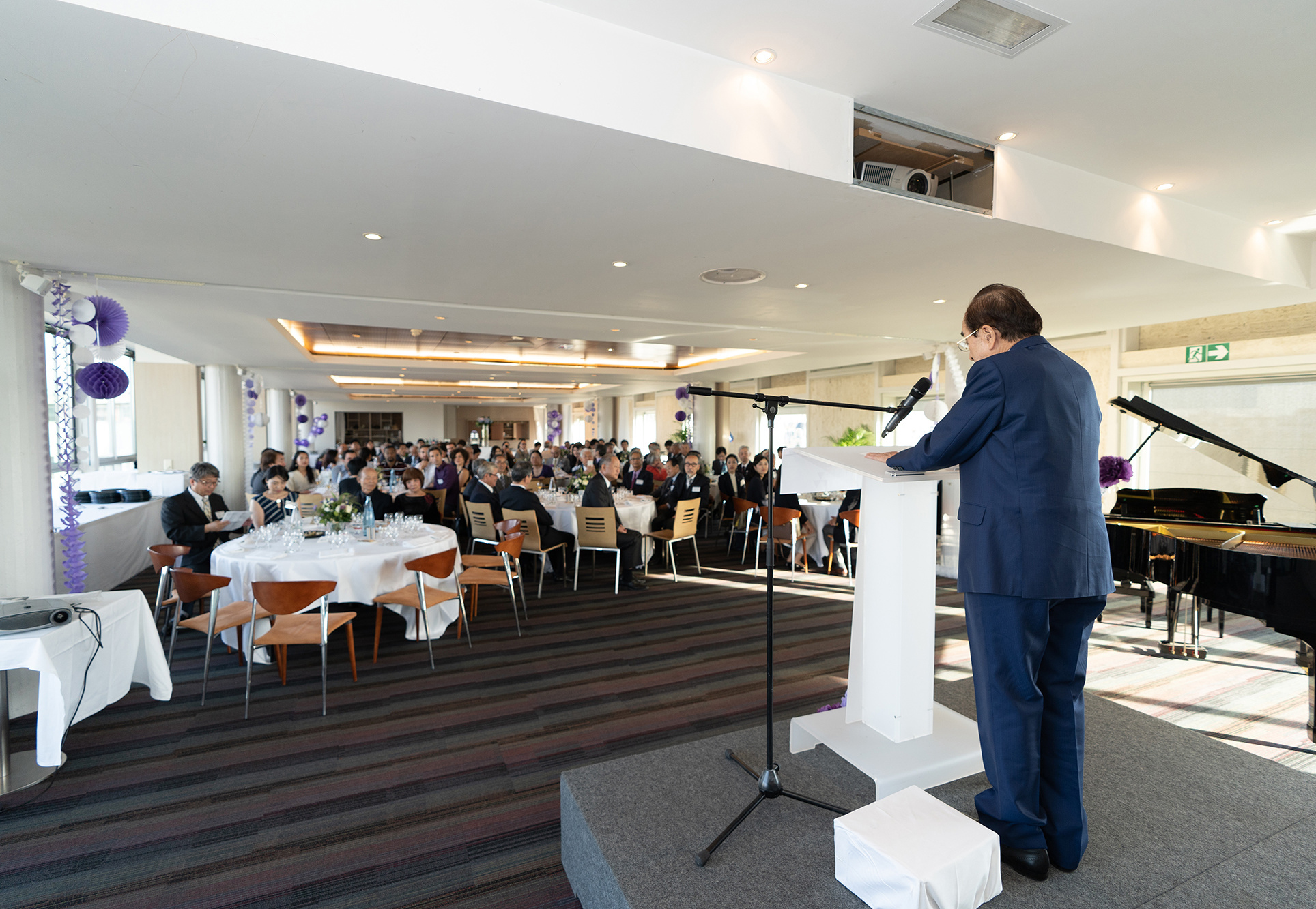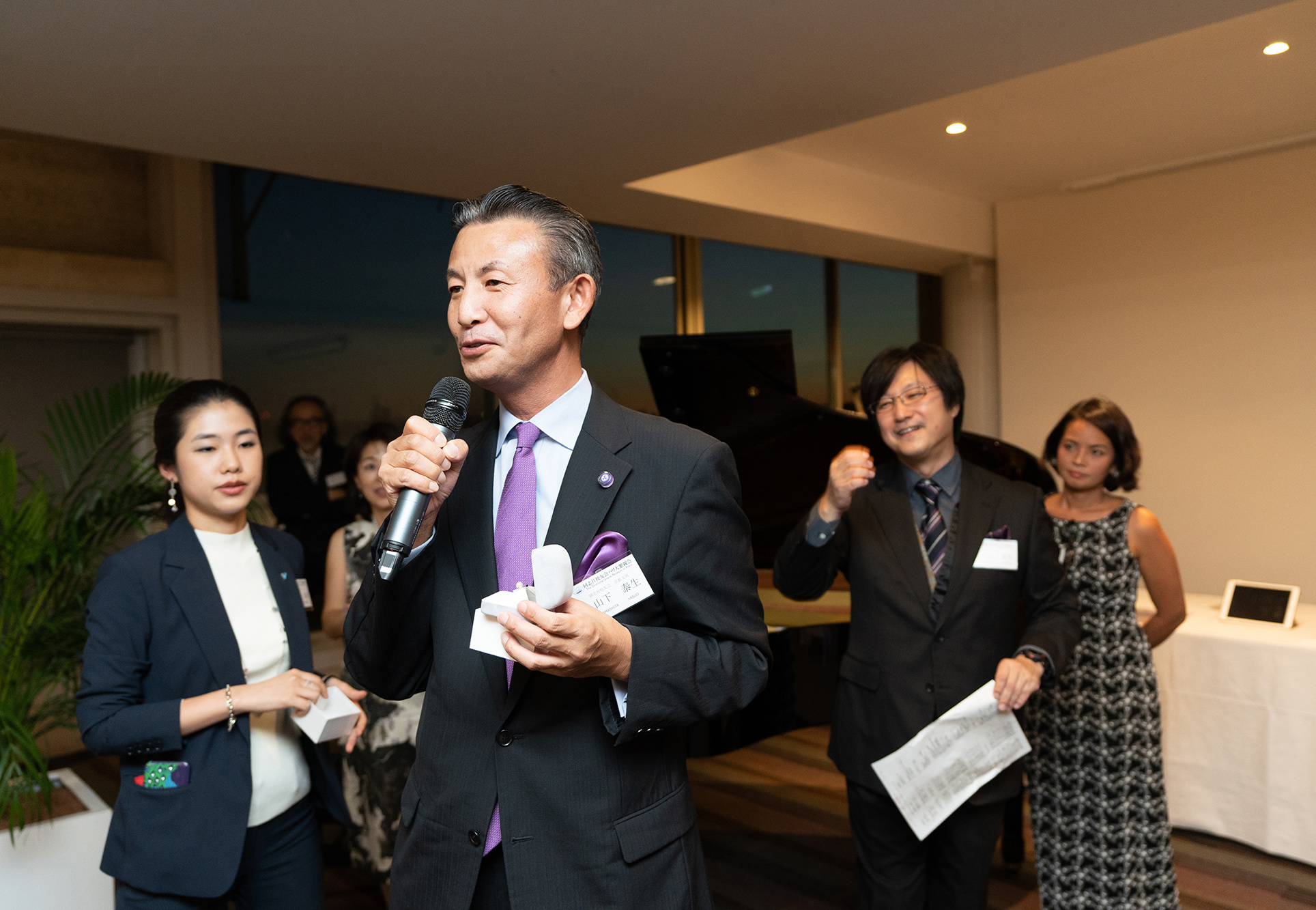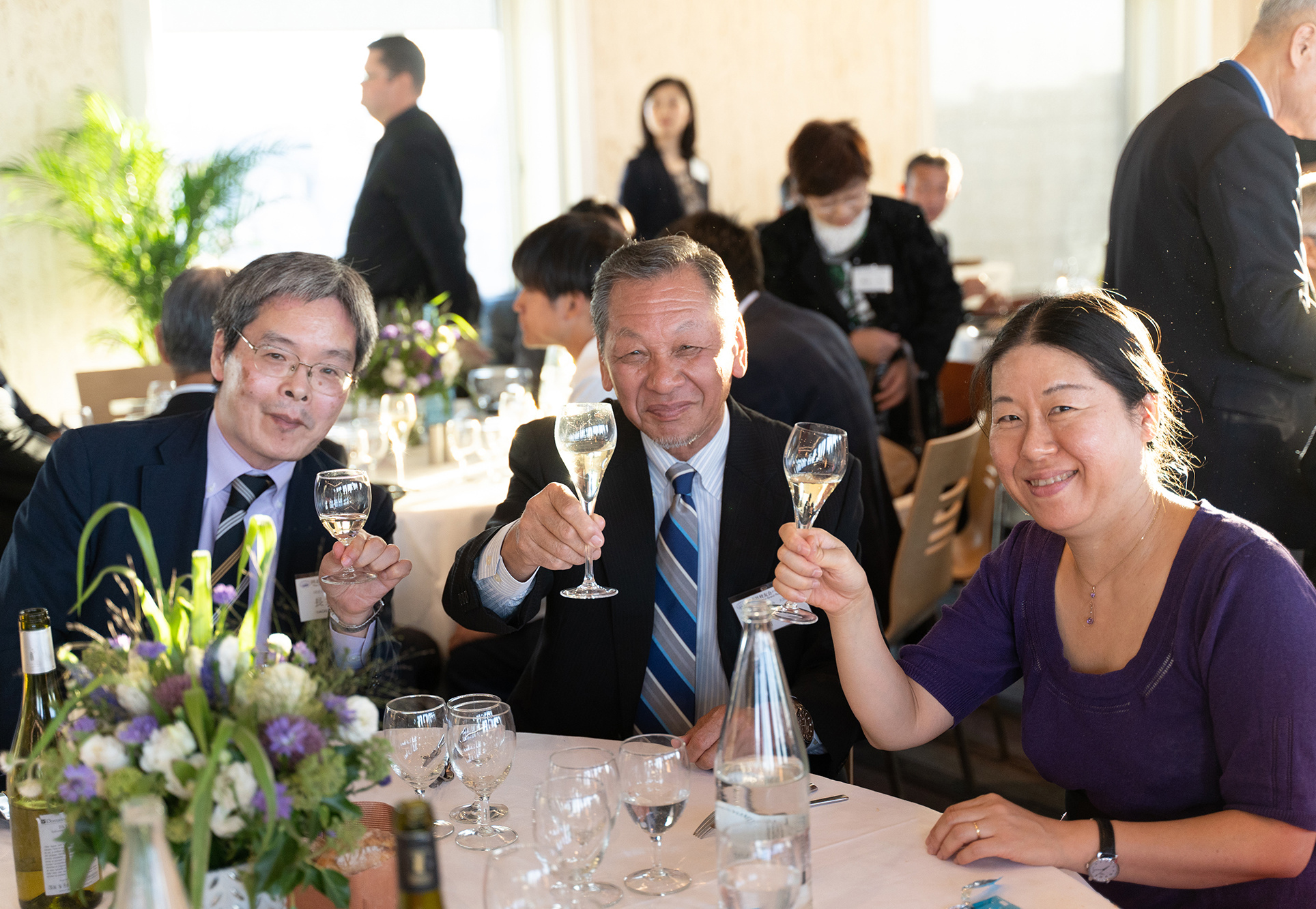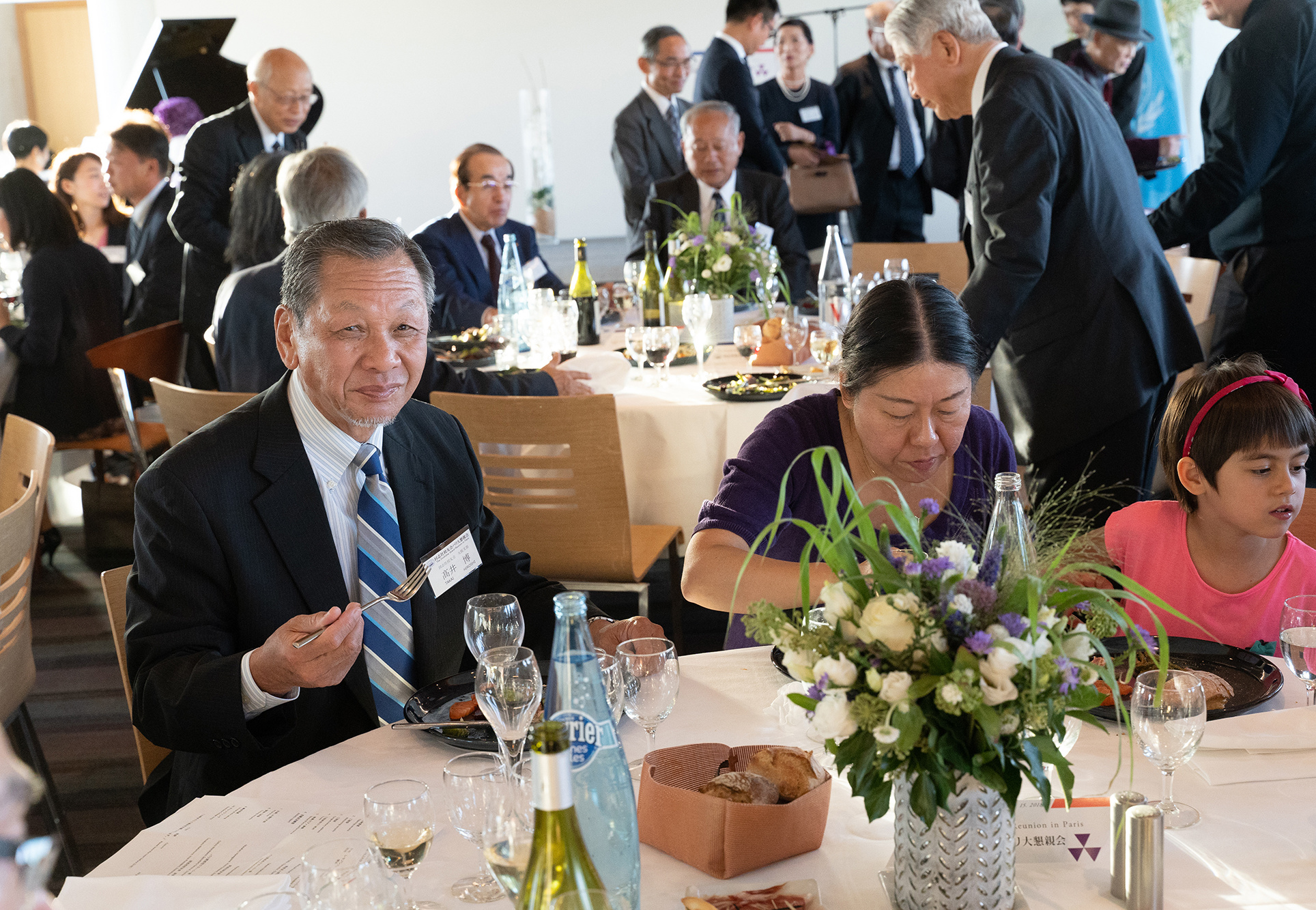 同志社校友会井上会長から、ここ数年の同志社校友会のグローバル化のスピードには目を見張るものがあり、ここパリはまさに同志社校友会グローバリゼーションの中核をなすものである。今後の校友会ネットワークの発展に向け、海外支部との連携を更に深めたいとご挨拶がありました。