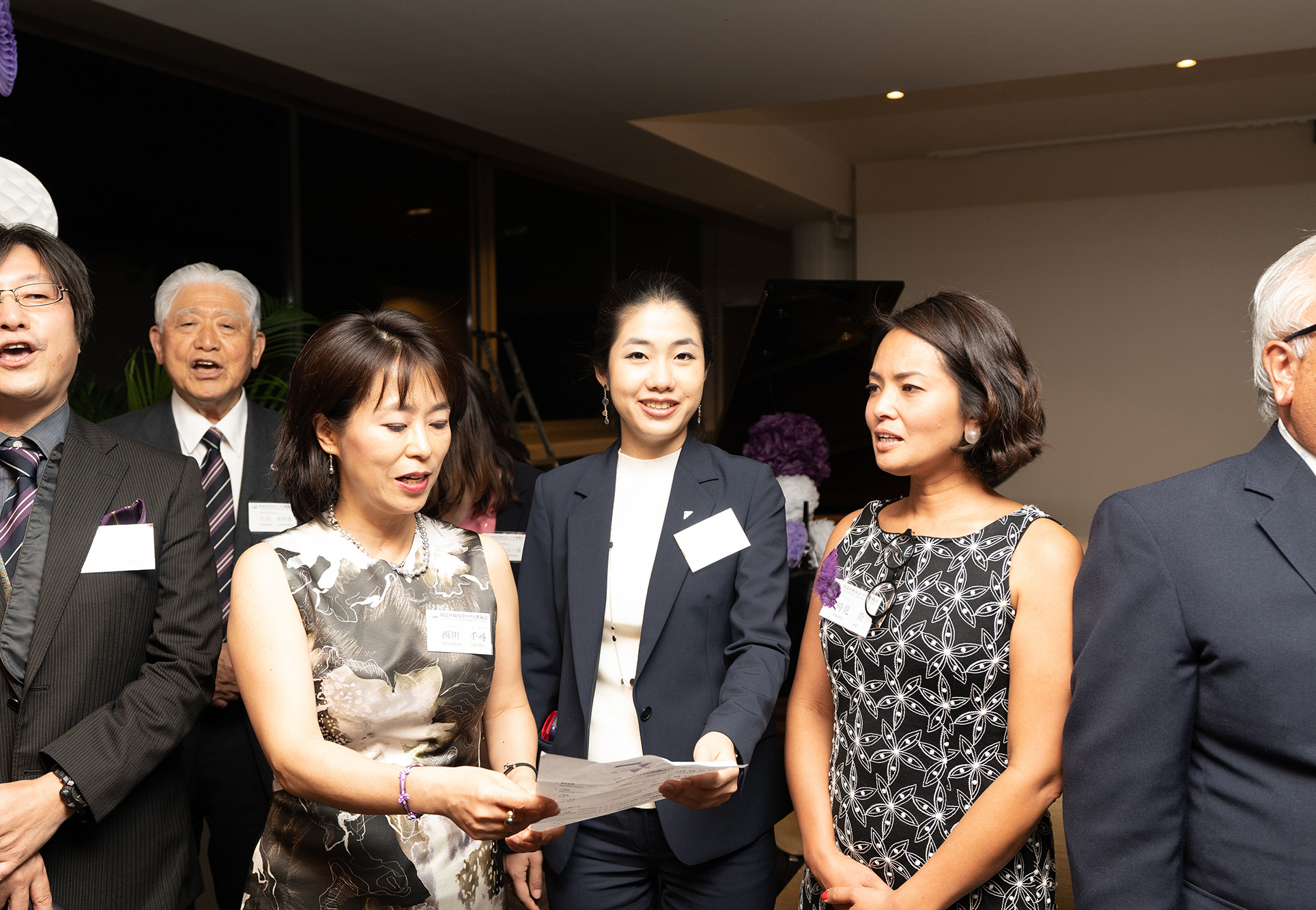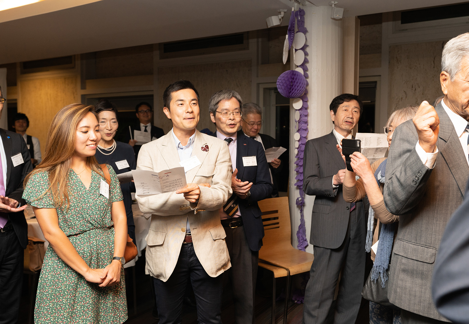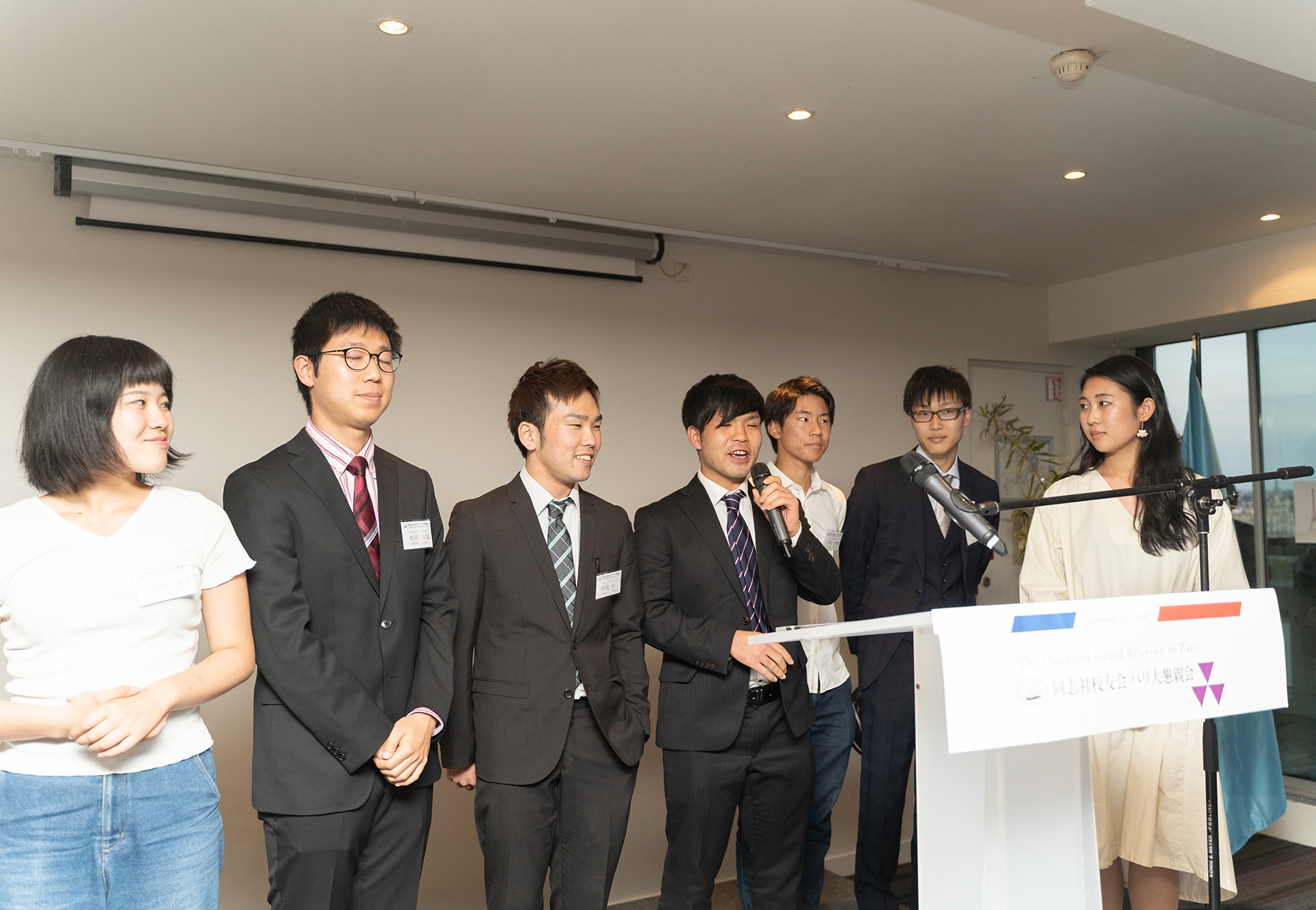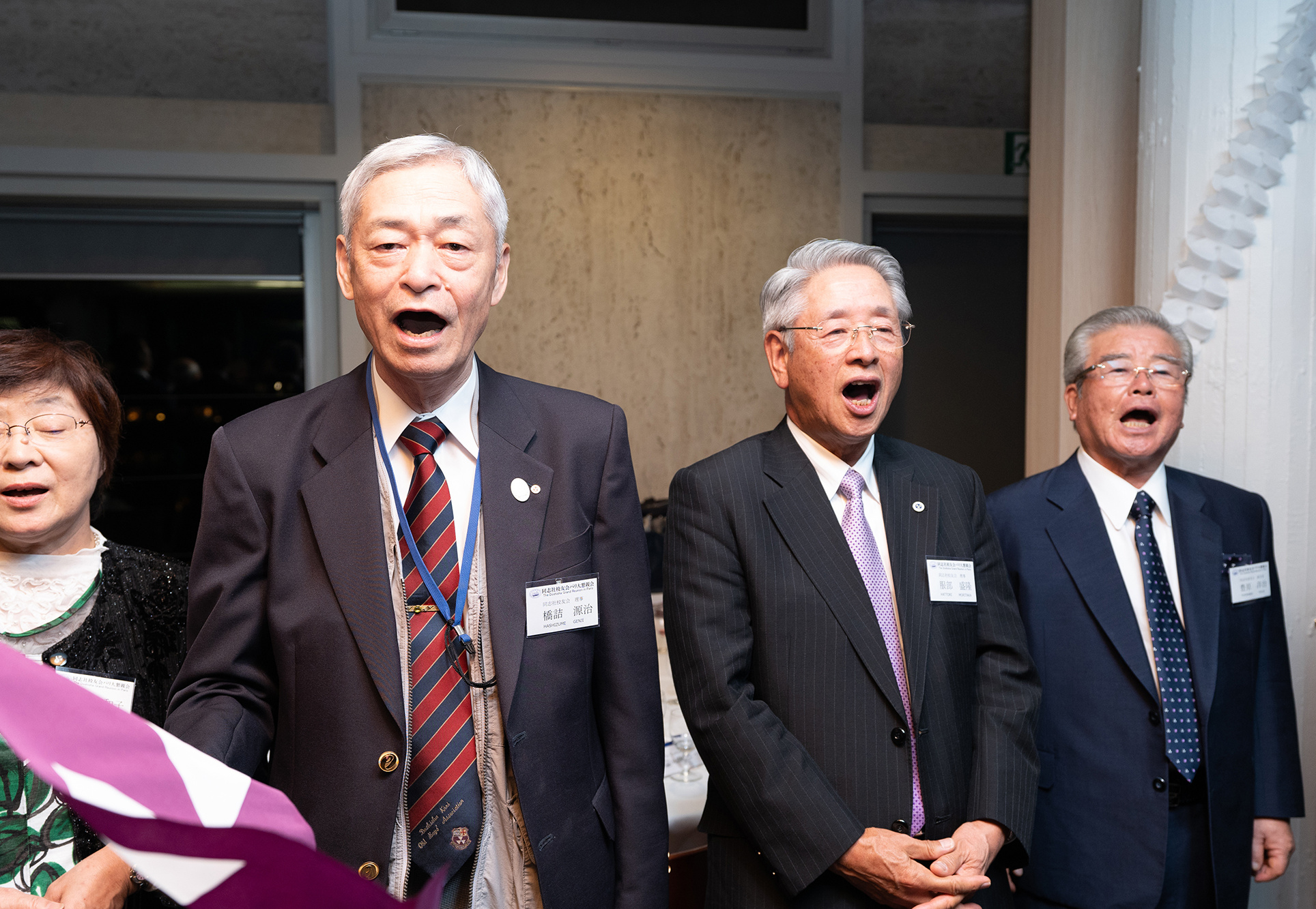 会の締めくくりは、パリ同志社クローバー会西川代表によるお礼の言葉、同志社校友会中村副会長によるご挨拶の後、懇親会でも素晴らしい演奏をご披露いただいた中本陽子さん、あべありかさんによるピアノ伴奏で「Doshisha College song」を参加者全員で高らかに歌い、「同志社チア」がパリの空の下こだましました。同志社の団結力と国際主義を再認識し、また何れかの国での再会を誓いながら名残惜しくもみな家路につき、パリの夜は更けていきました。