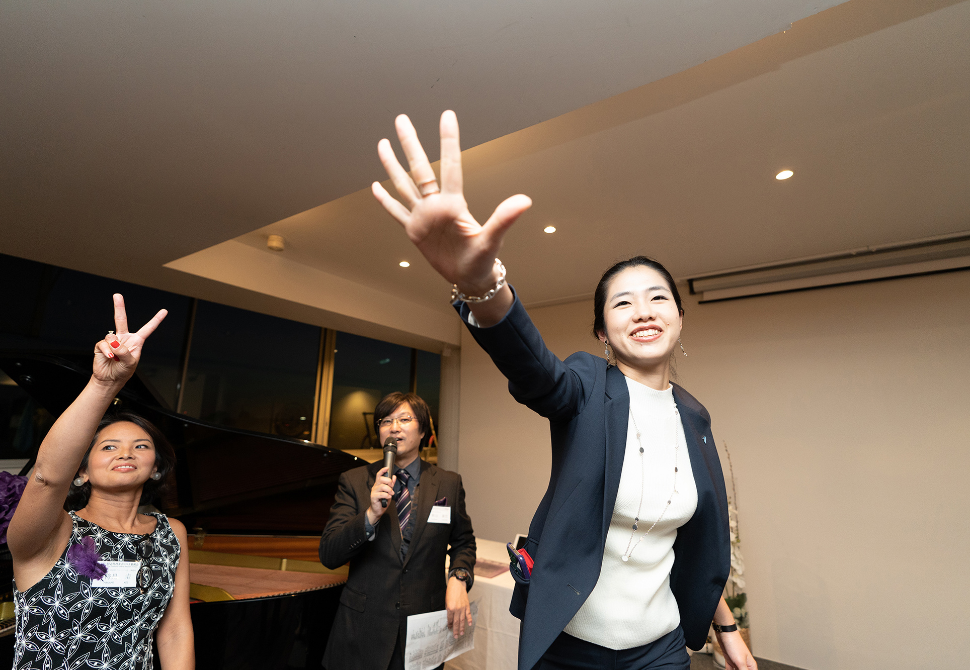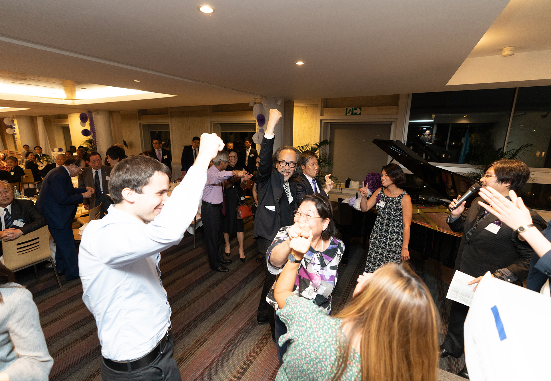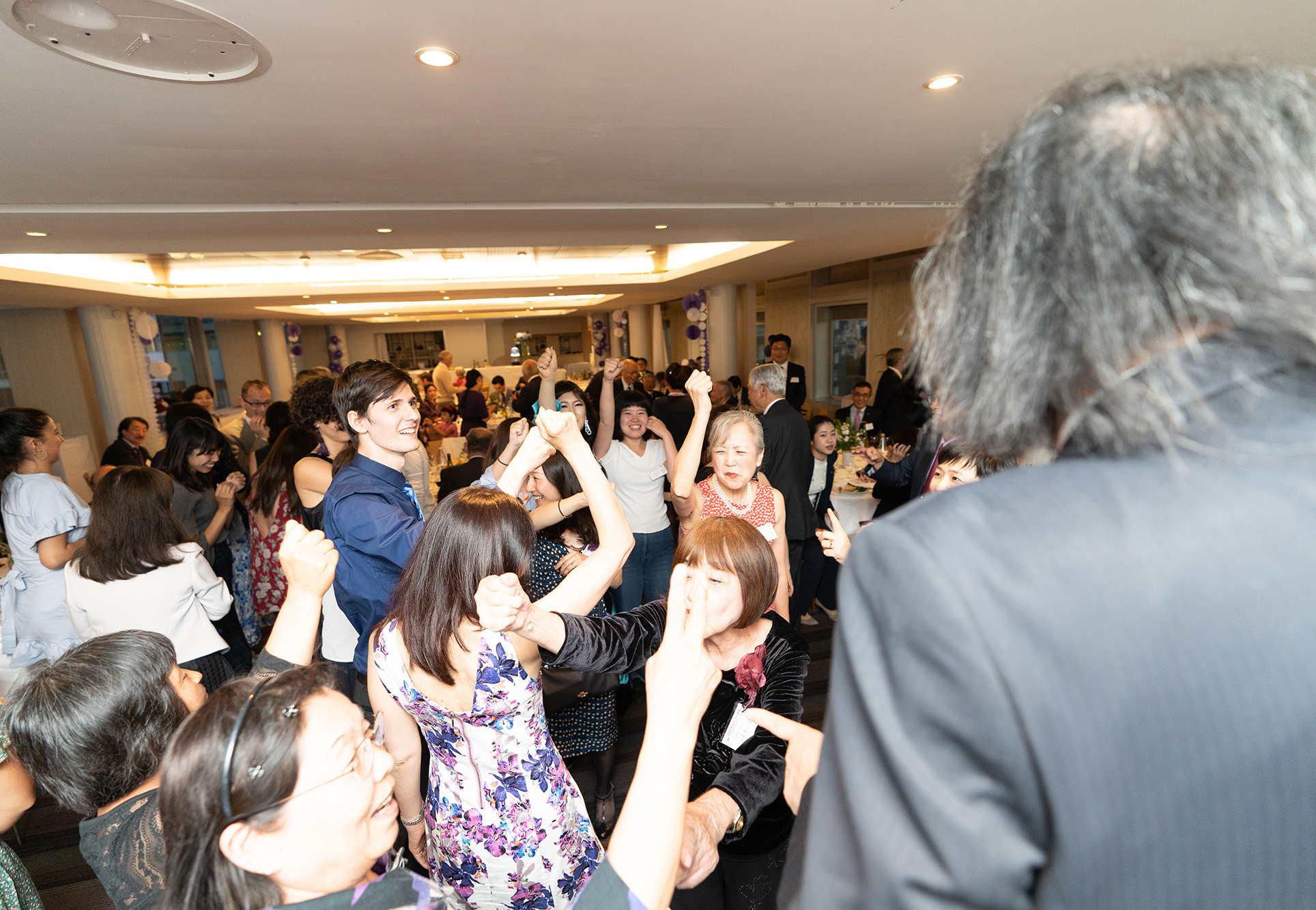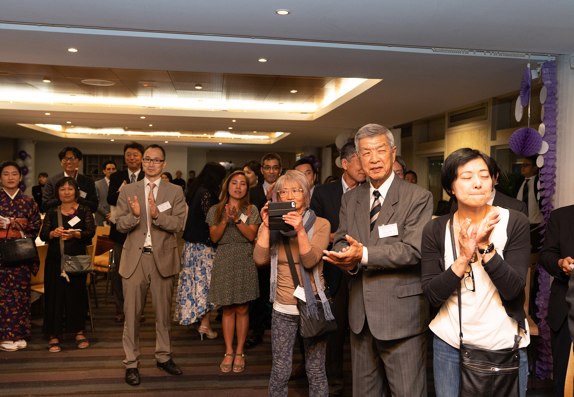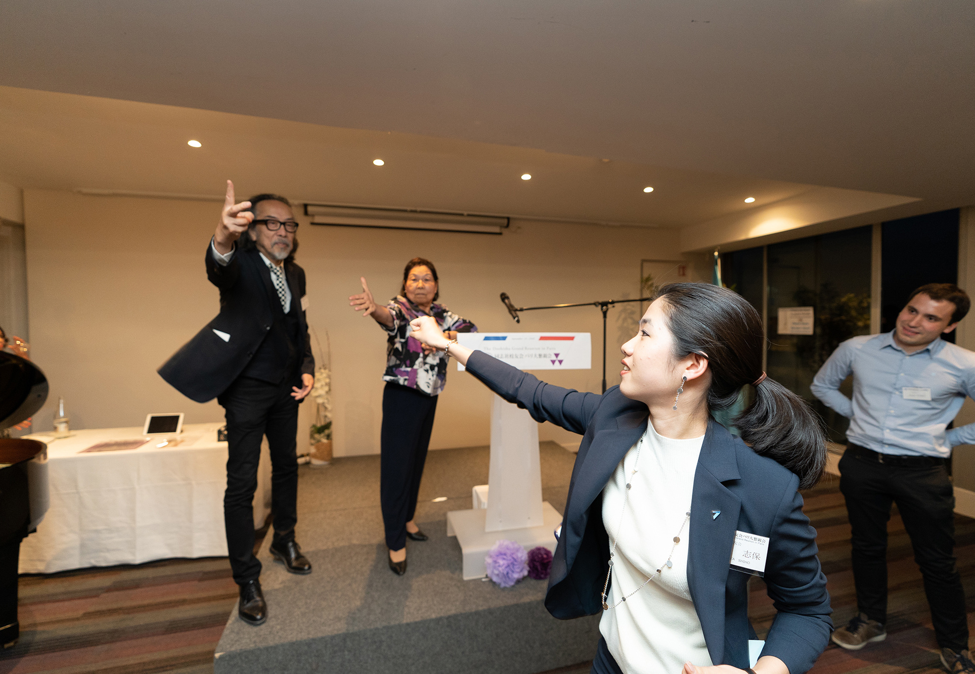 会の締めくくりは、パリ同志社クローバー会西川代表によるお礼の言葉、同志社校友会中村副会長によるご挨拶の後、懇親会でも素晴らしい演奏をご披露いただいた中本陽子さん、あべありかさんによるピアノ伴奏で「Doshisha College song」を参加者全員で高らかに歌い、「同志社チア」がパリの空の下こだましました。同志社の団結力と国際主義を再認識し、また何れかの国での再会を誓いながら名残惜しくもみな家路につき、パリの夜は更けていきました。