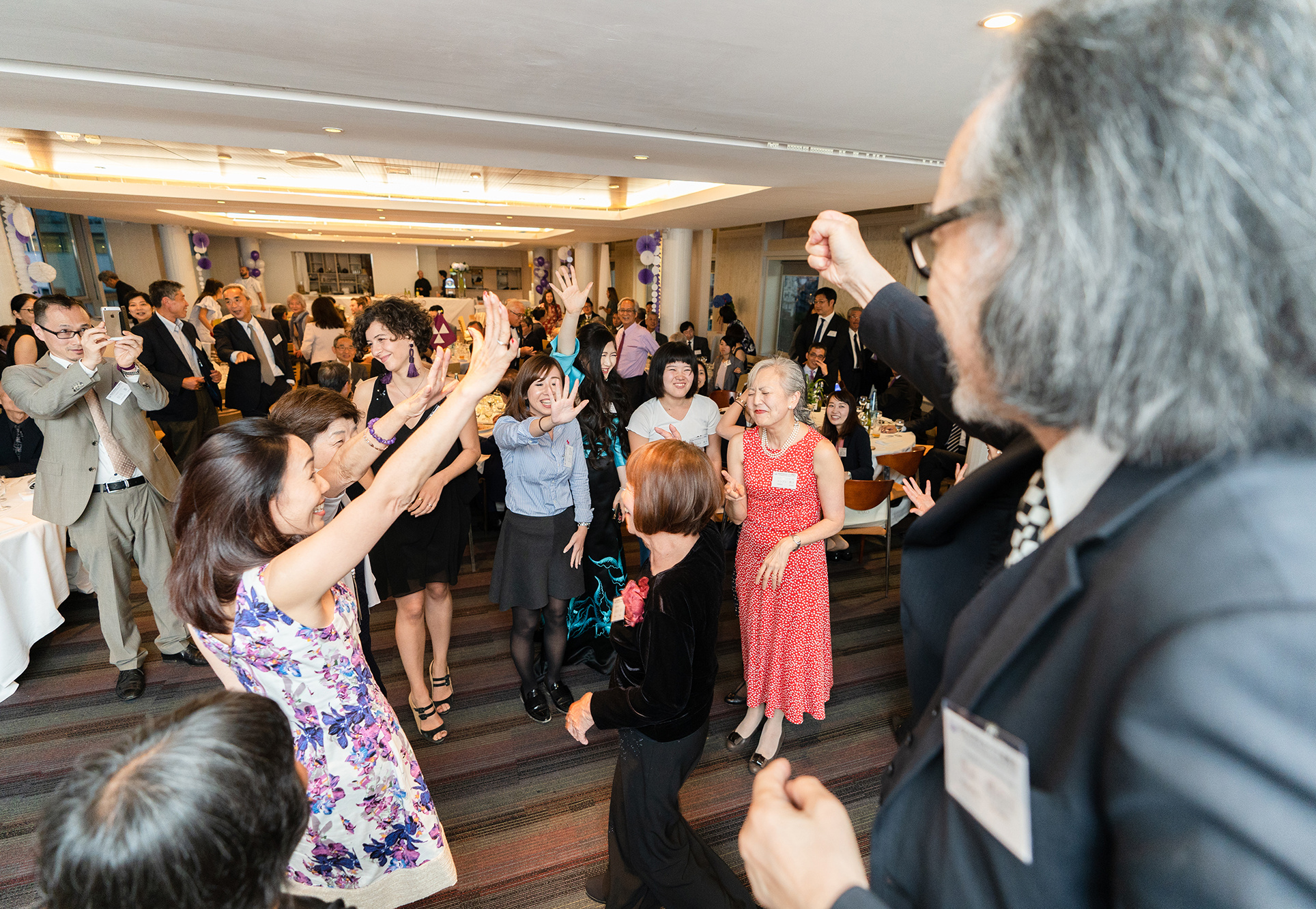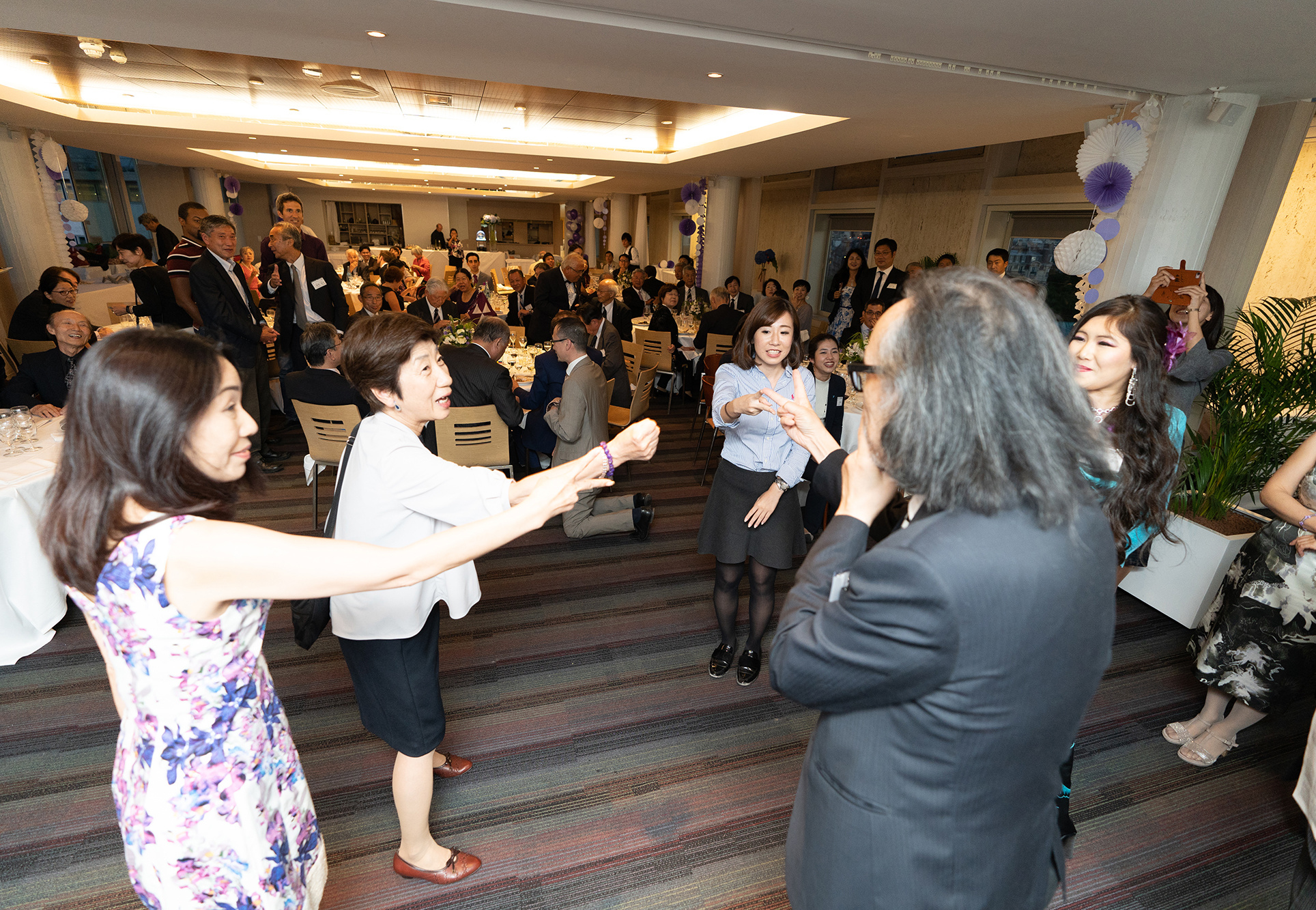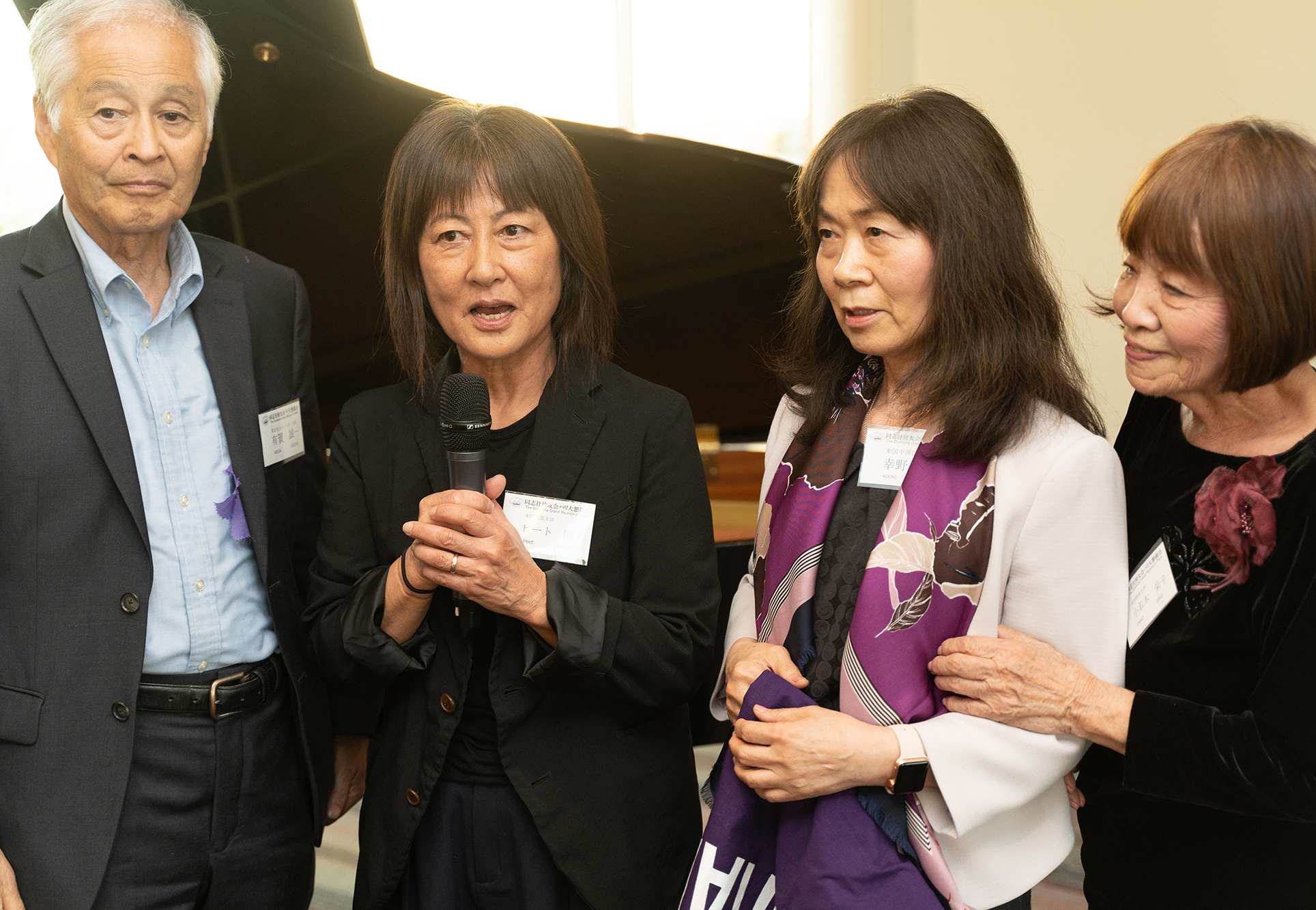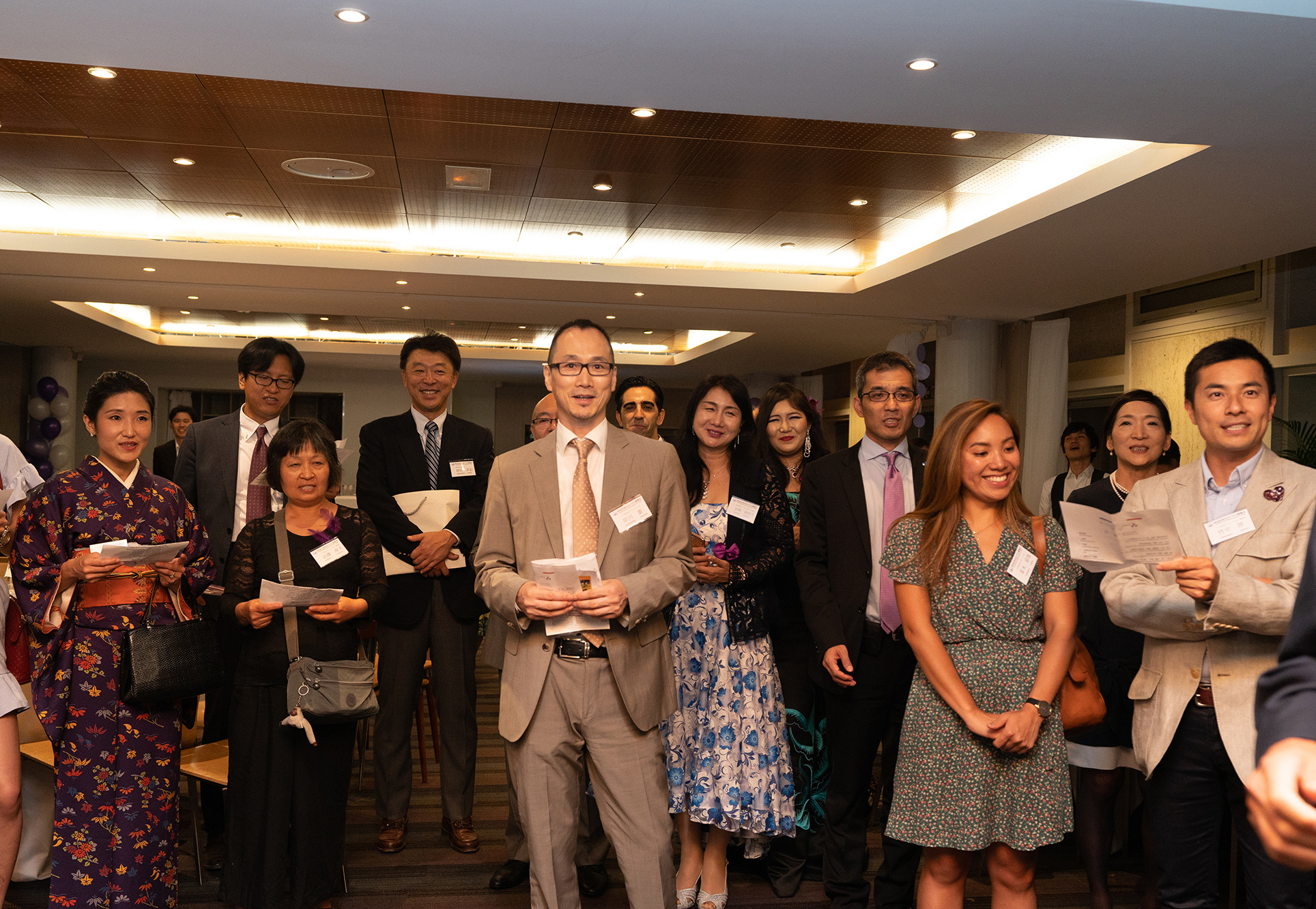 会の締めくくりは、パリ同志社クローバー会西川代表によるお礼の言葉、同志社校友会中村副会長によるご挨拶の後、懇親会でも素晴らしい演奏をご披露いただいた中本陽子さん、あべありかさんによるピアノ伴奏で「Doshisha College song」を参加者全員で高らかに歌い、「同志社チア」がパリの空の下こだましました。同志社の団結力と国際主義を再認識し、また何れかの国での再会を誓いながら名残惜しくもみな家路につき、パリの夜は更けていきました。