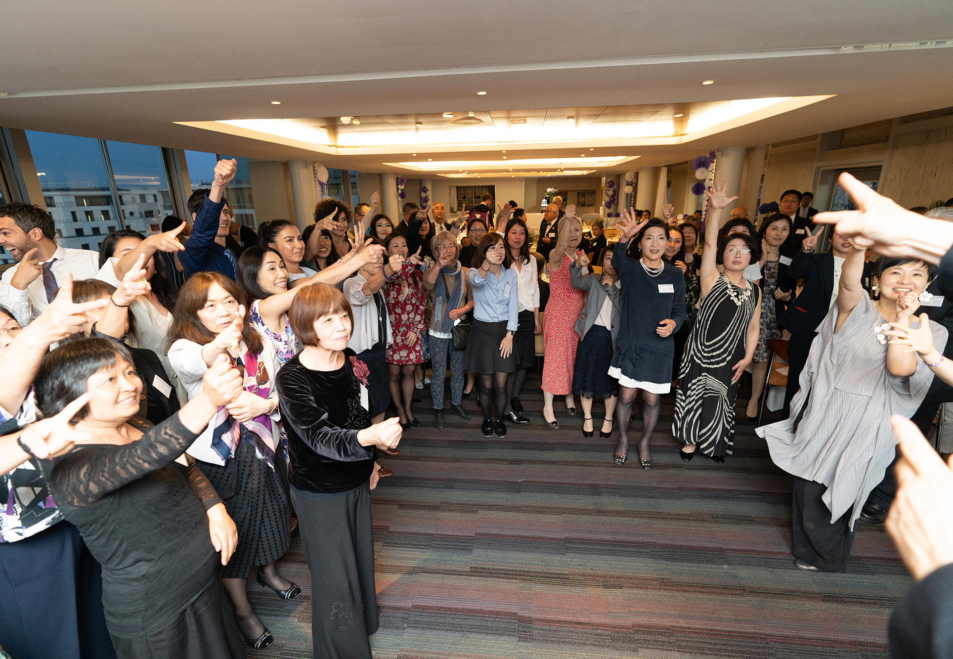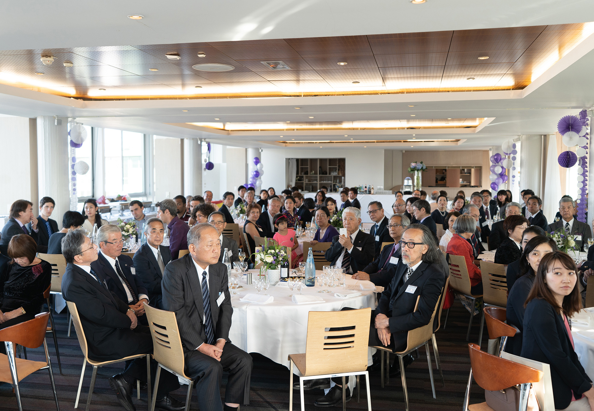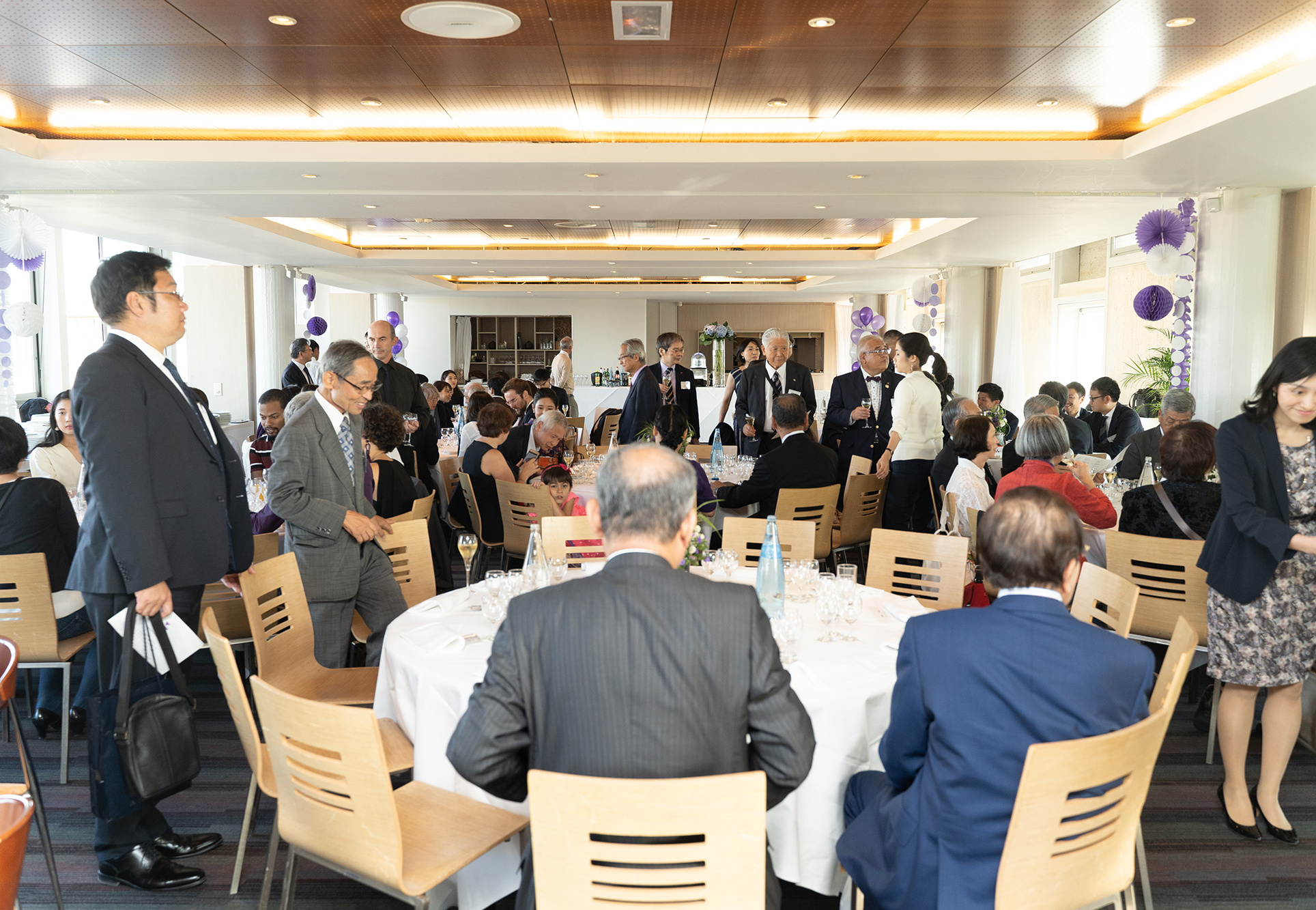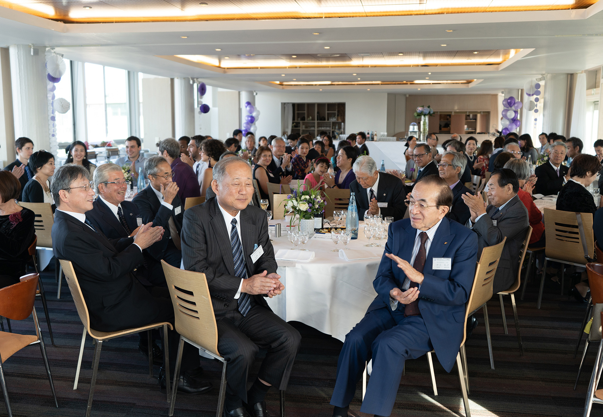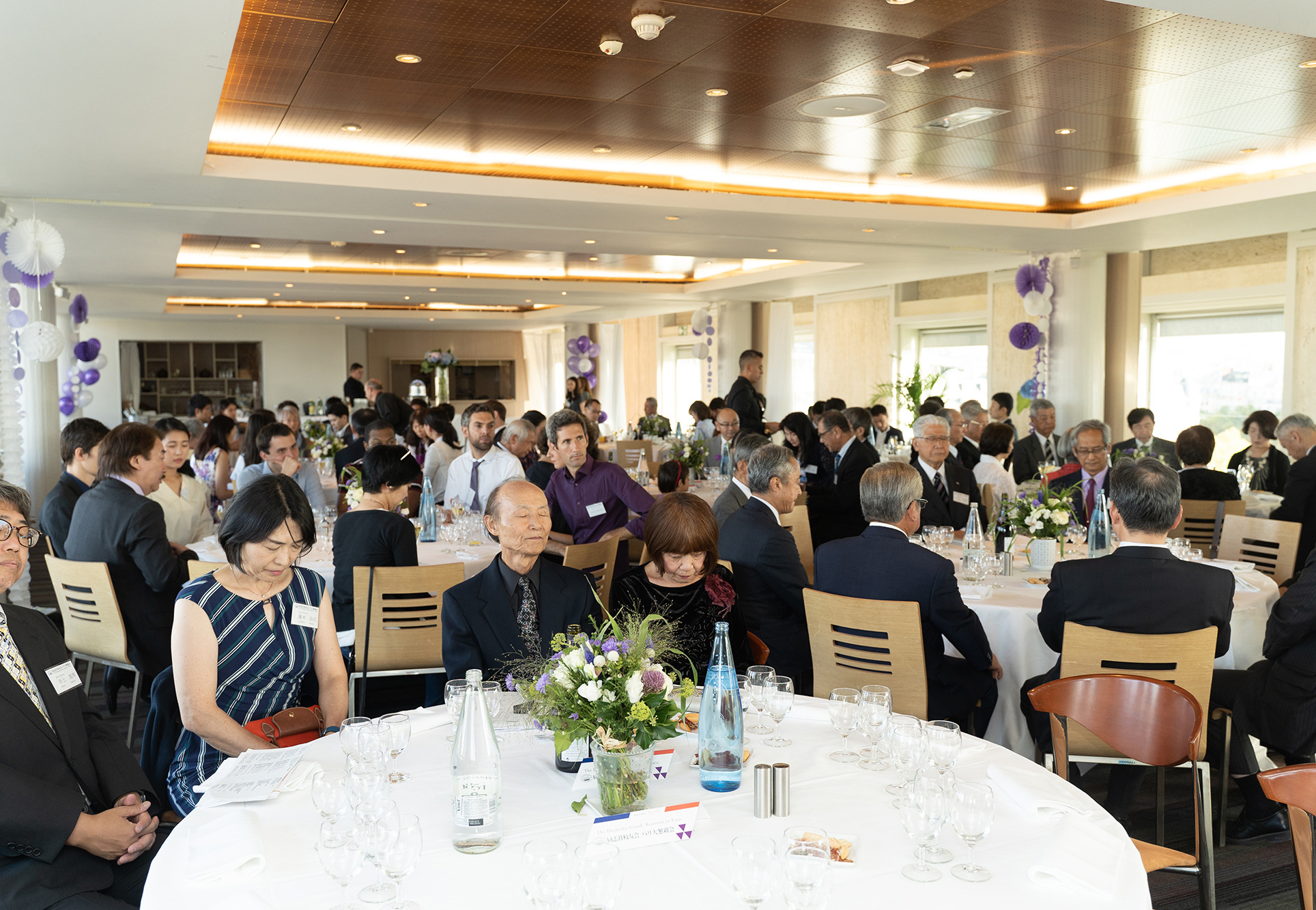 当日は偶然にも「ヨーロッパ文化遺産の日」と重なり、会場となったパリのユネスコビルにも大勢の観光客が訪れる中、パリはもちろん、ロンドン、スペイン、フィレンツェ、ミラノ、ドイツ、イスタンブールのヨーロッパ各支部、トロント、米国西部、及び中西部支部の参加となりました。また、日本からも多くの方々がユネスコビル7階レストランに集い、総勢107名の方が参加されました。