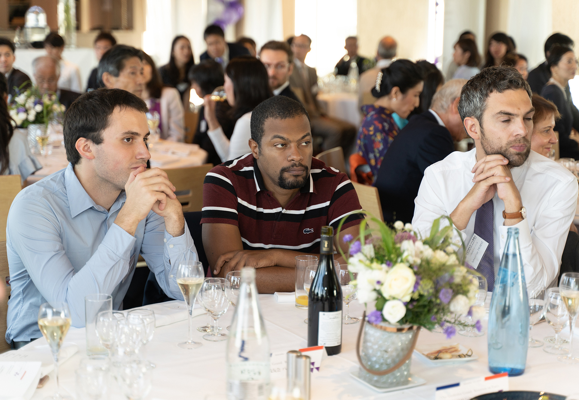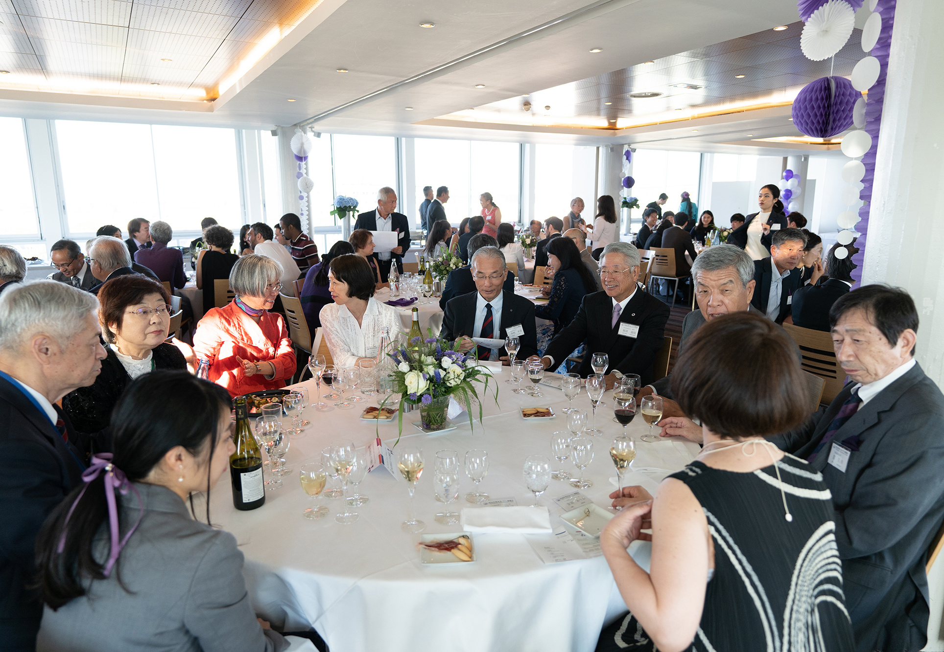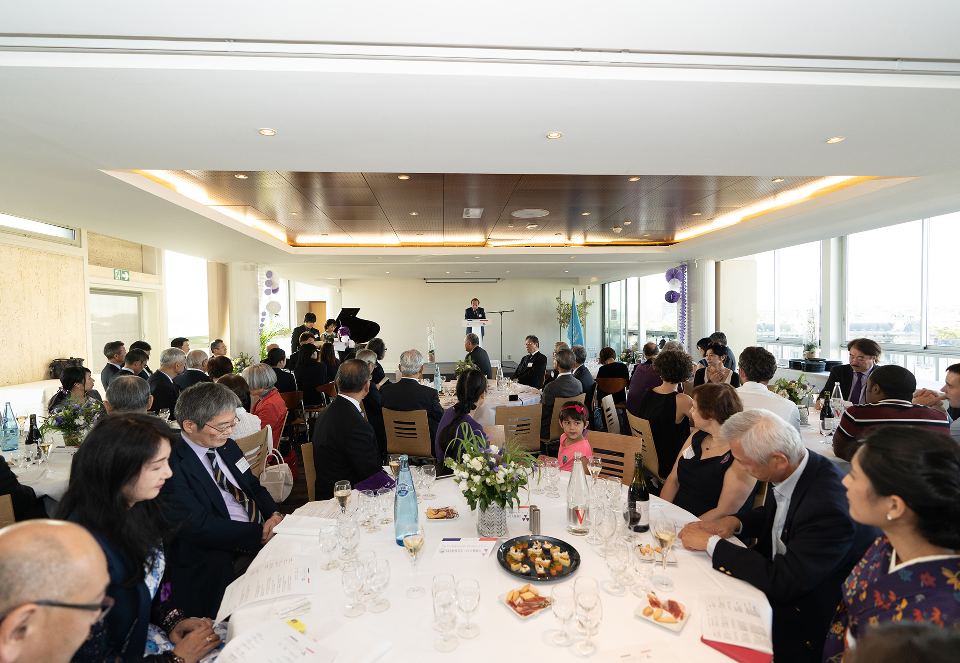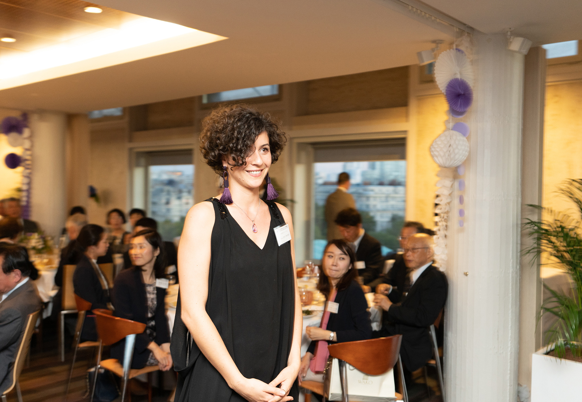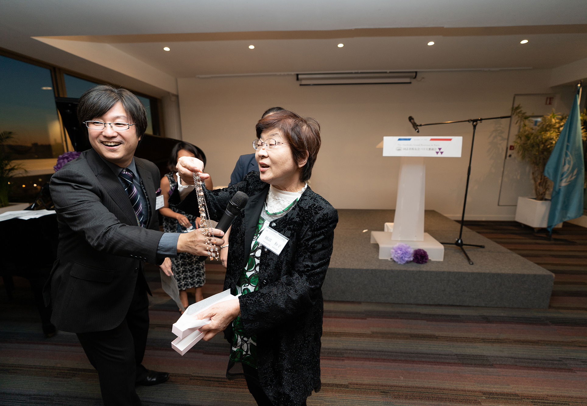 当日は偶然にも「ヨーロッパ文化遺産の日」と重なり、会場となったパリのユネスコビルにも大勢の観光客が訪れる中、パリはもちろん、ロンドン、スペイン、フィレンツェ、ミラノ、ドイツ、イスタンブールのヨーロッパ各支部、トロント、米国西部、及び中西部支部の参加となりました。また、日本からも多くの方々がユネスコビル7階レストランに集い、総勢107名の方が参加されました。